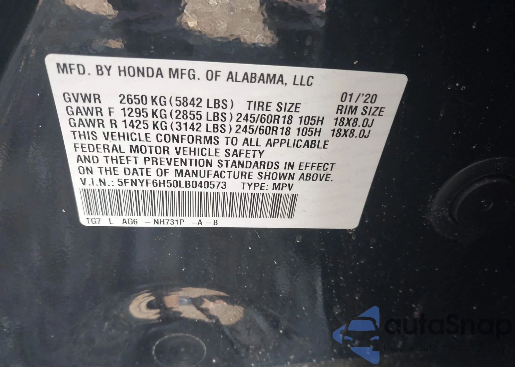 VIN: 5FNYF6H50LB040573