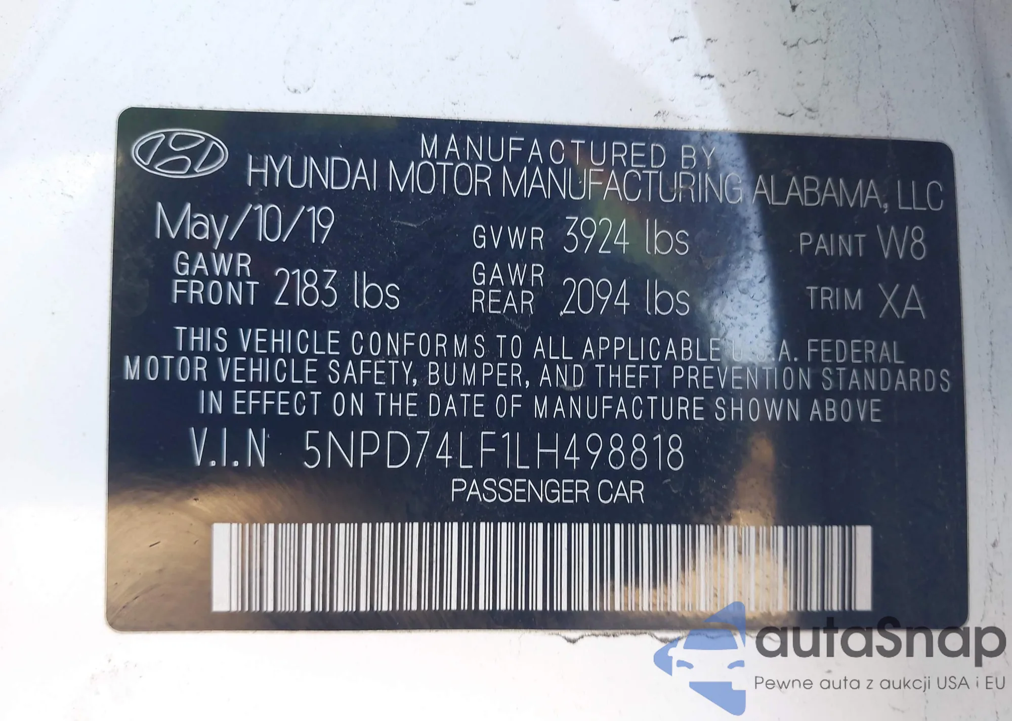 The car Hyundai Elantra 2020 (VIN 5NPD74LF1LH498818) has not been auctioned before. The documents are clean, and the mileage matches or is below the market average. Sold by an insurance company – we recommend purchase. Delivery to the port will take approx. 6–8 weeks.