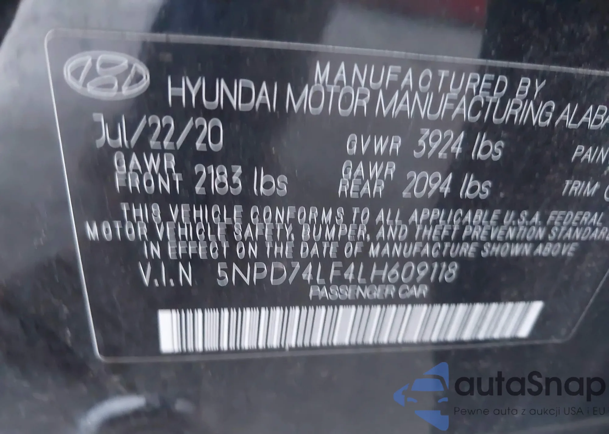 VIN: 5NPD74LF4LH609118
