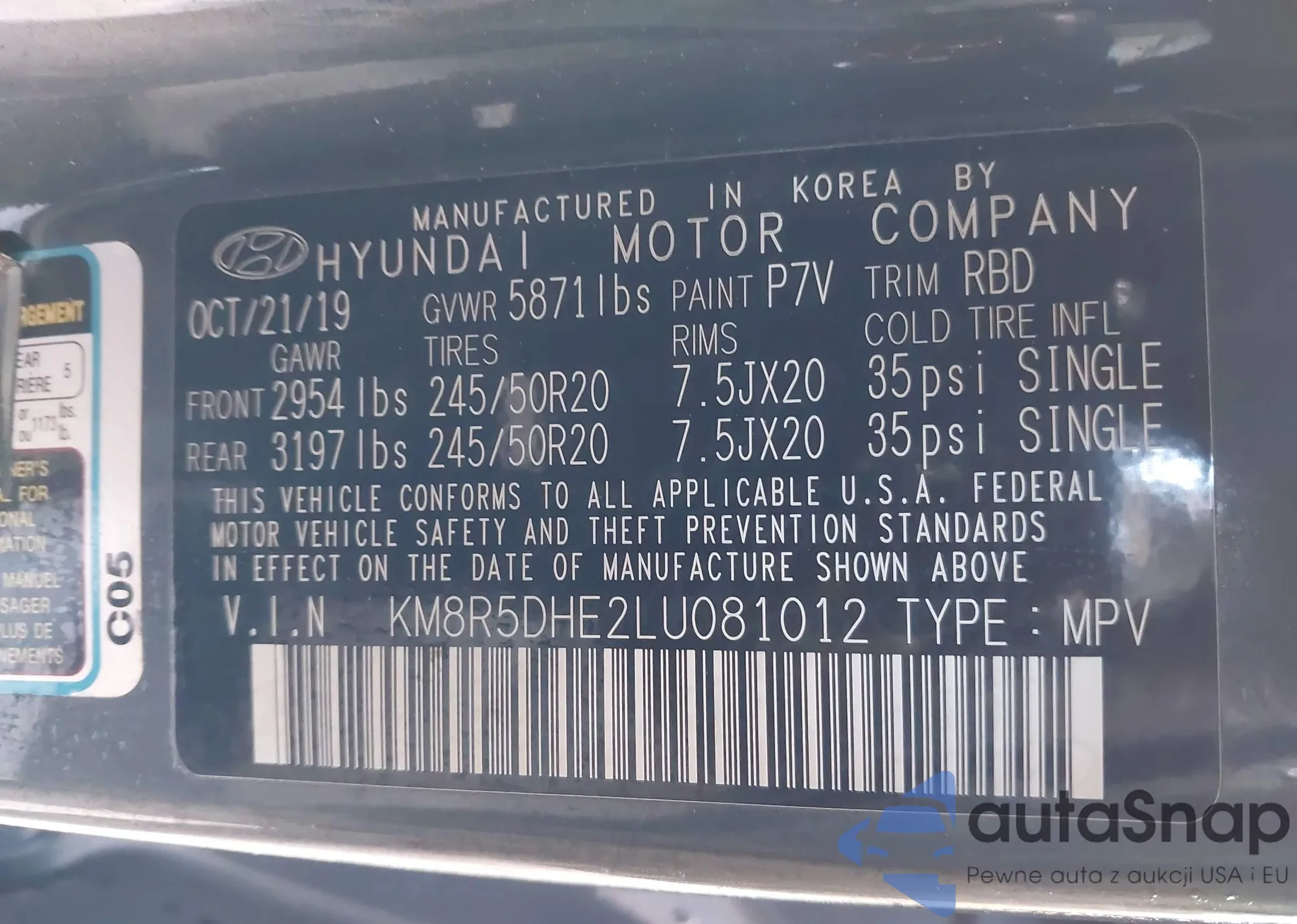 The car Hyundai Palisade 2020 (VIN KM8R5DHE2LU081012) has not been auctioned before. The documents are clean, and the mileage matches or is below the market average. Sold by an insurance company – we recommend purchase. Delivery to the port will take approx. 6–8 weeks.