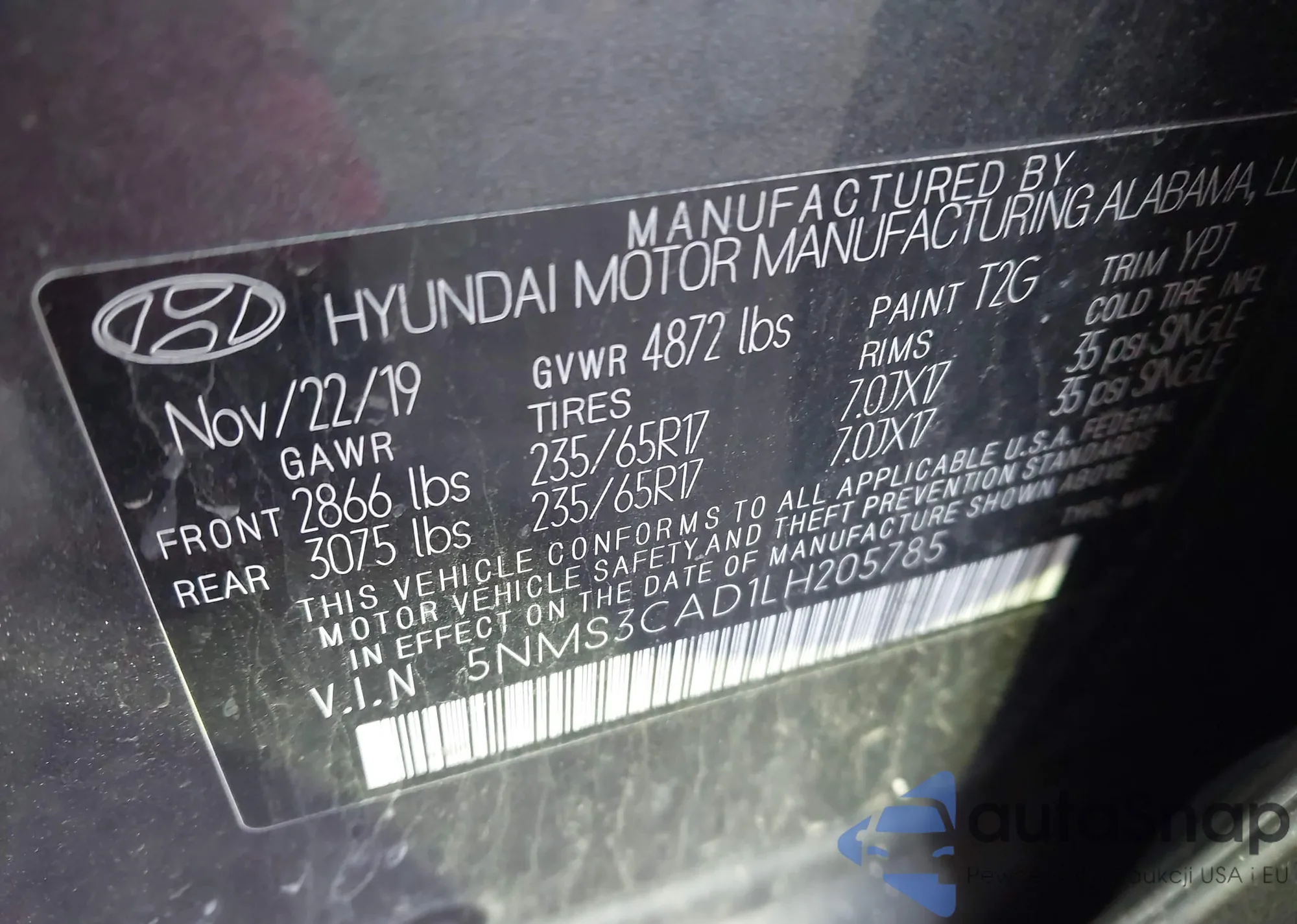 • VIN: 5NMF3CAD1LH205785