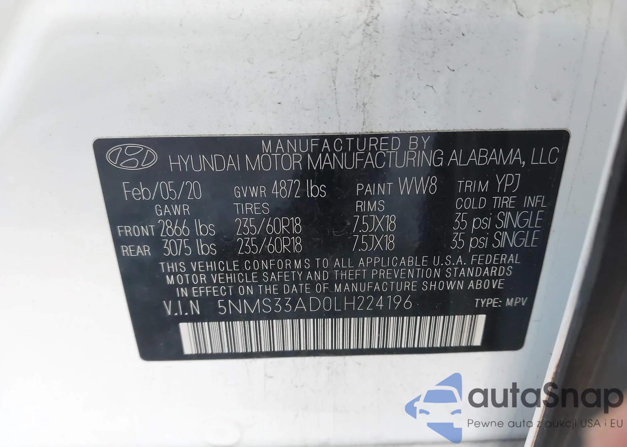 VIN: 5NMS33AD0LH224196