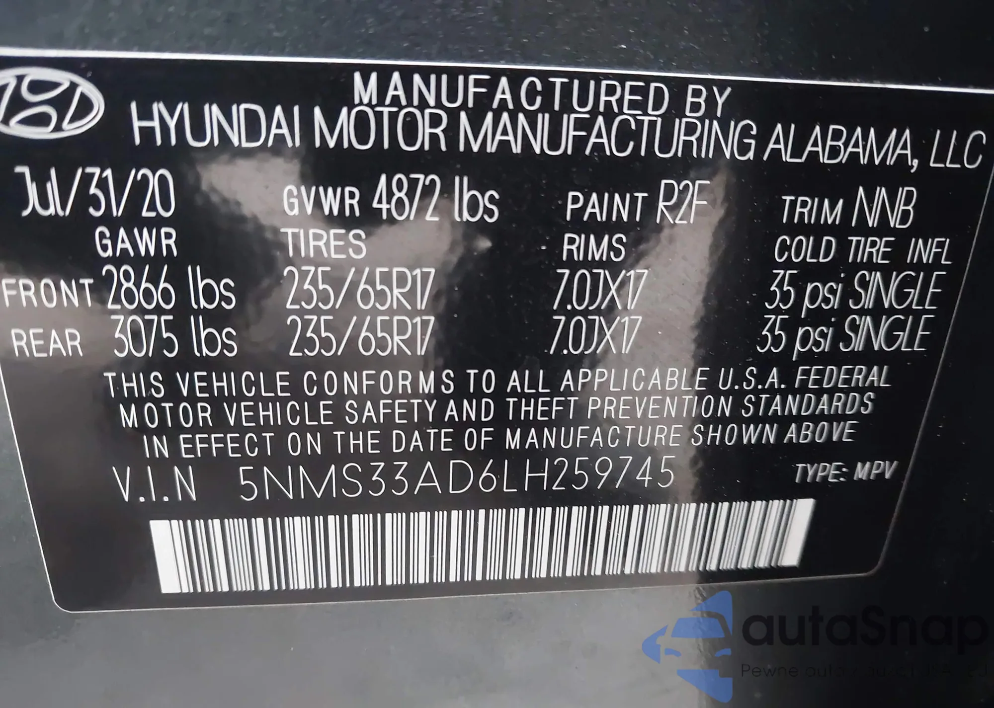 VIN: 5NMS33AD6LH259745