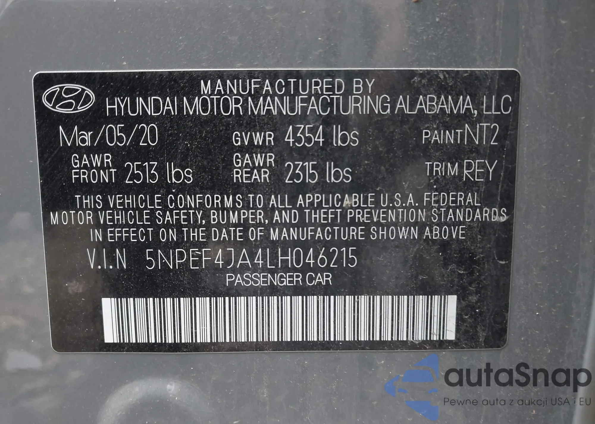 VIN: 5NPEF4JA4LH046215