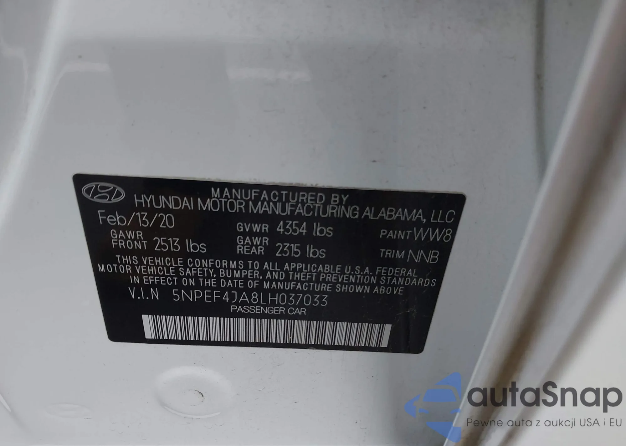 VIN: 5NPEF4JA8LH037033