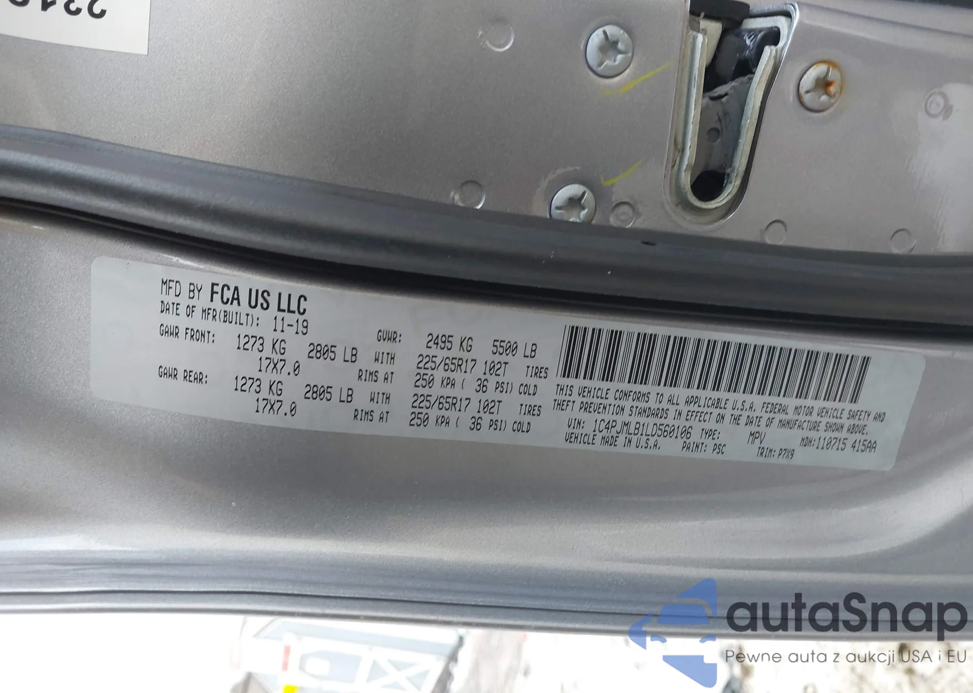 The car Jeep Cherokee 2020 (VIN 1C4PJMLB1LD560106) has not been auctioned before. The documents are clean, and the mileage matches or is below the market average. Sold by an insurance company – we recommend purchase. Delivery to the port will take approx. 6–8 weeks.