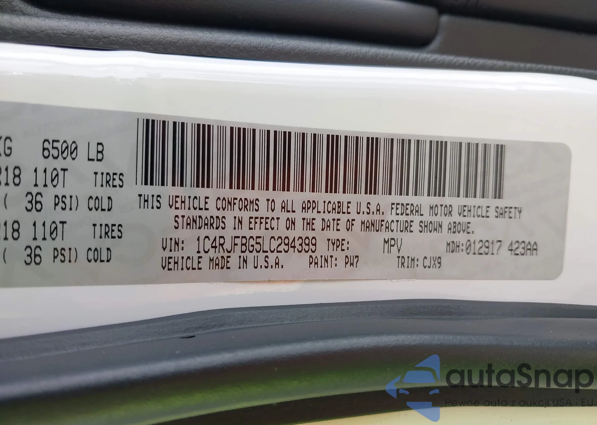 VIN: 1C4RJFBG5LC294399