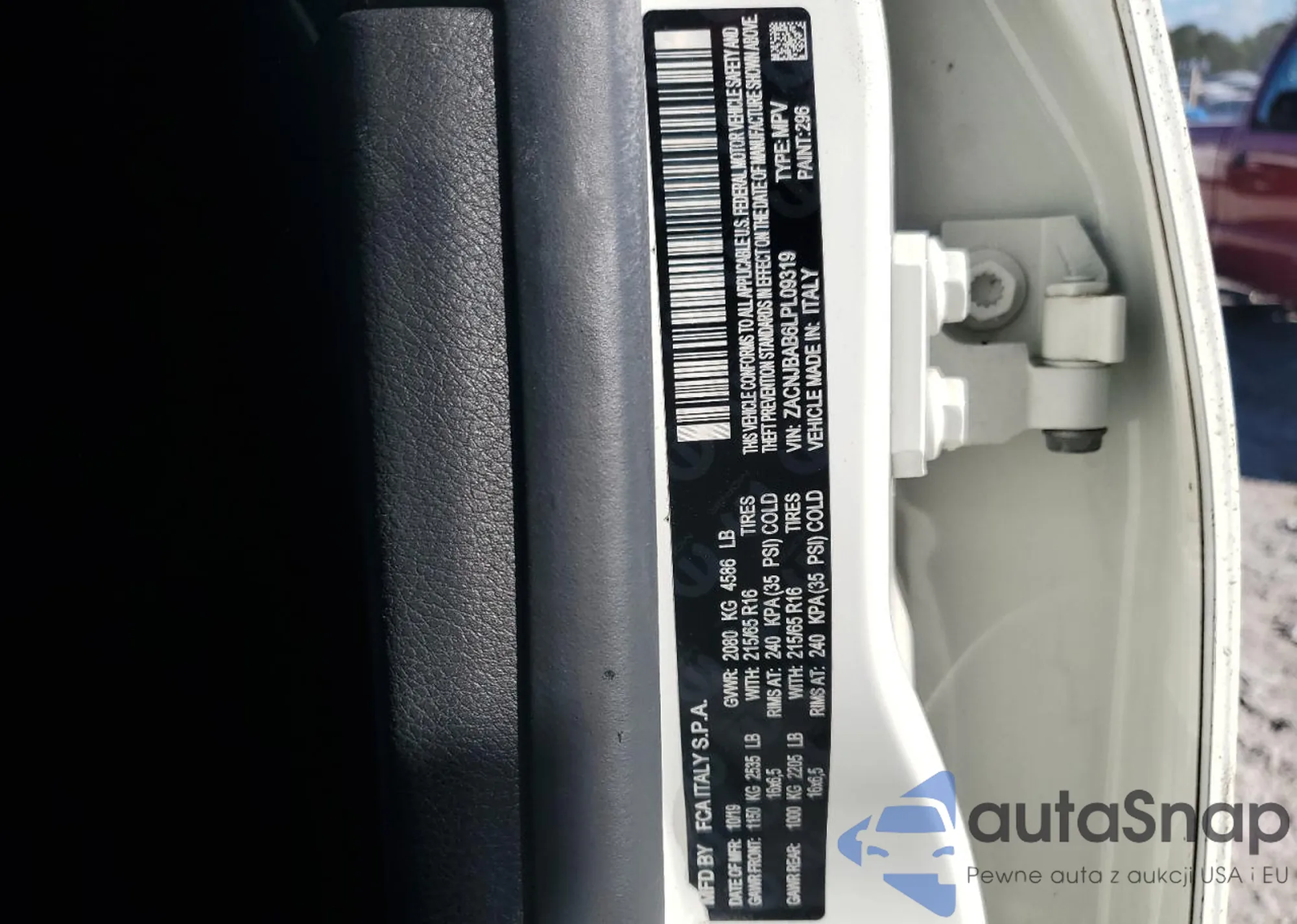 The car Jeep Renegade 2020 (VIN ZACNJBAB6LPL09319) has documents that prevent registration. Export and registration may be difficult. Contact AutaSnap experts to find alternatives.