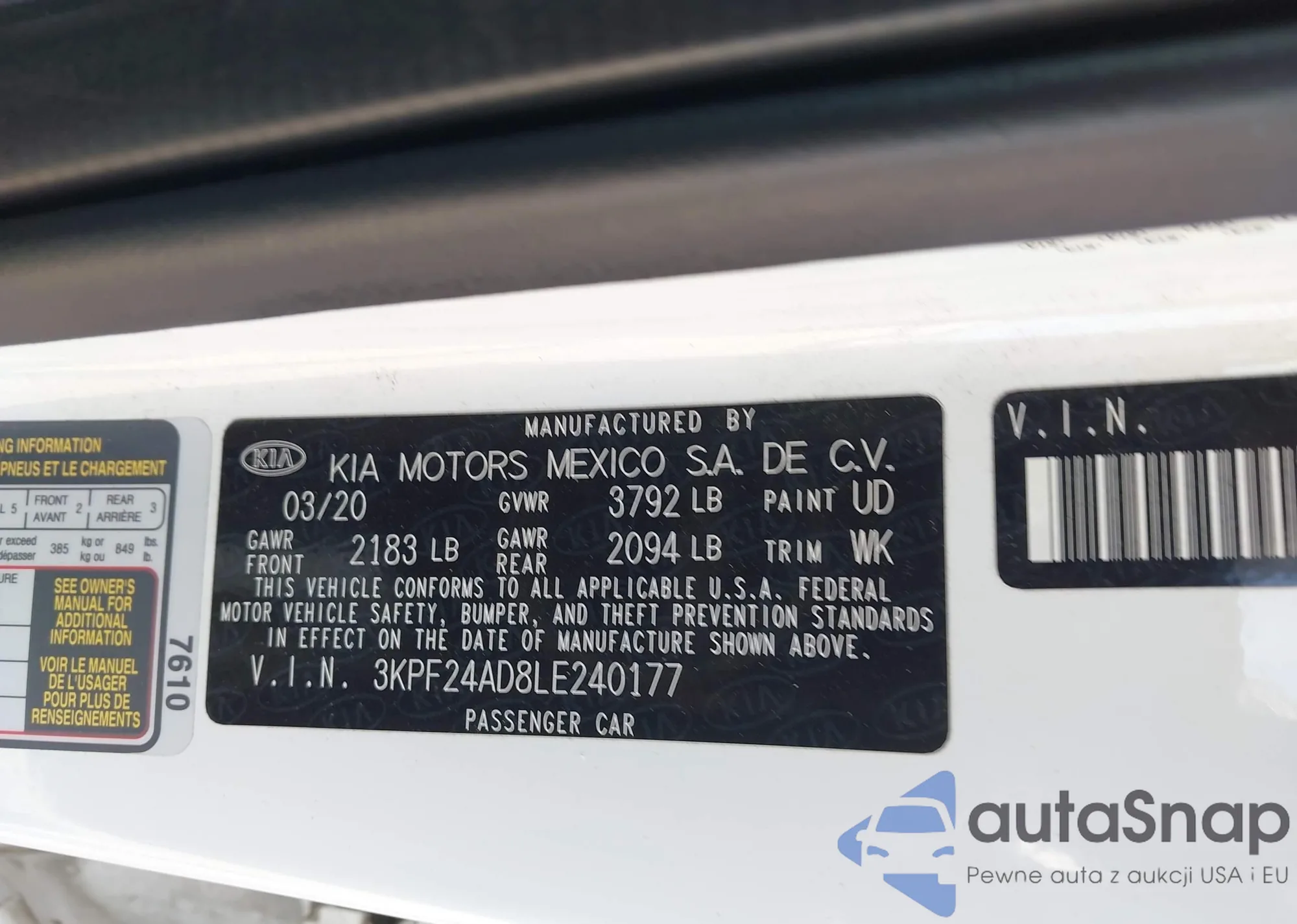 VIN: 3KPF24AD8LE240177