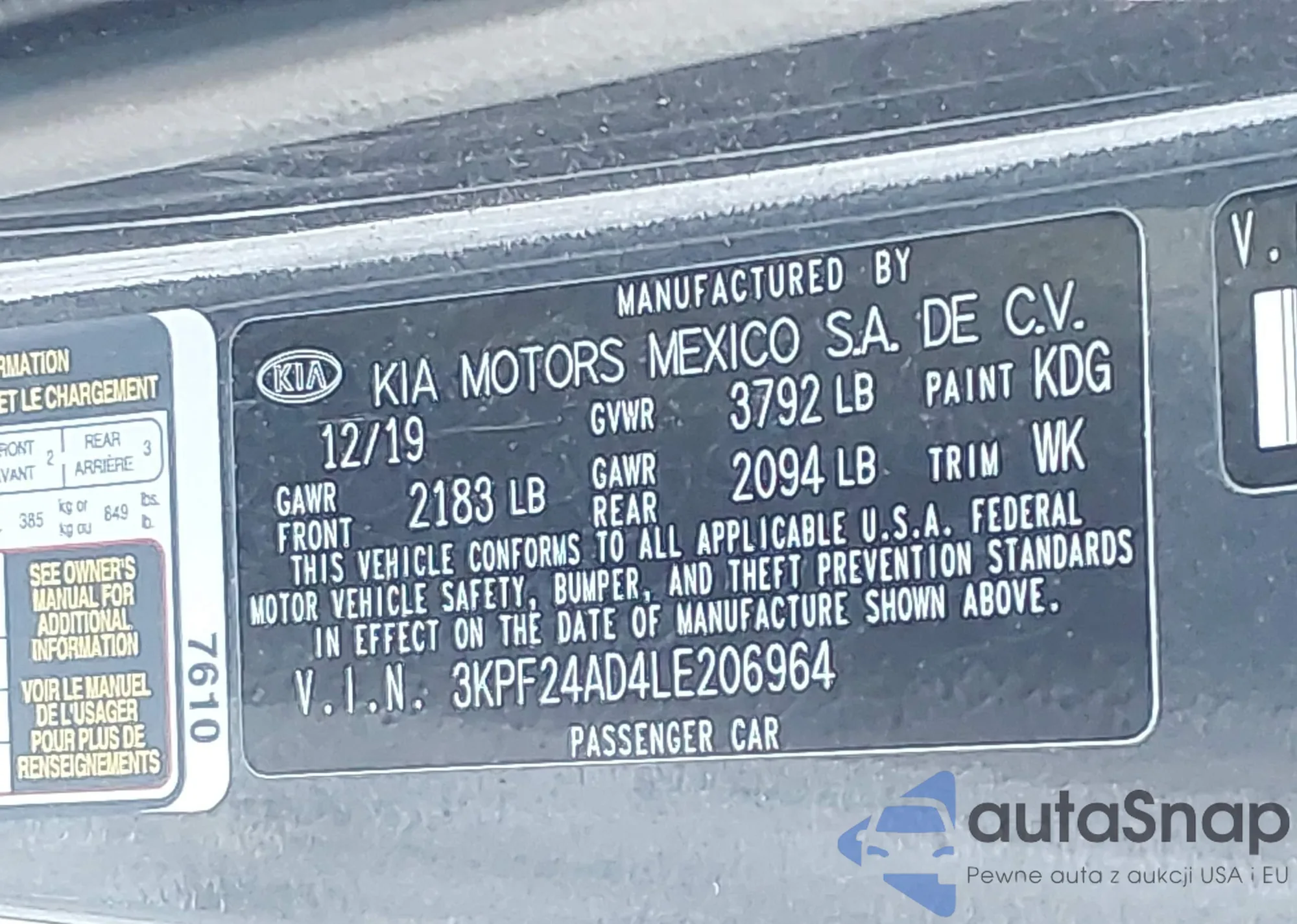 The car Kia Forte 2020 (VIN 3KPF24AD4LE206964) has not been auctioned before. The documents are clean, and the mileage matches or is below the market average. Sold by an insurance company – we recommend purchase. Delivery to the port will take approx. 6–8 weeks.