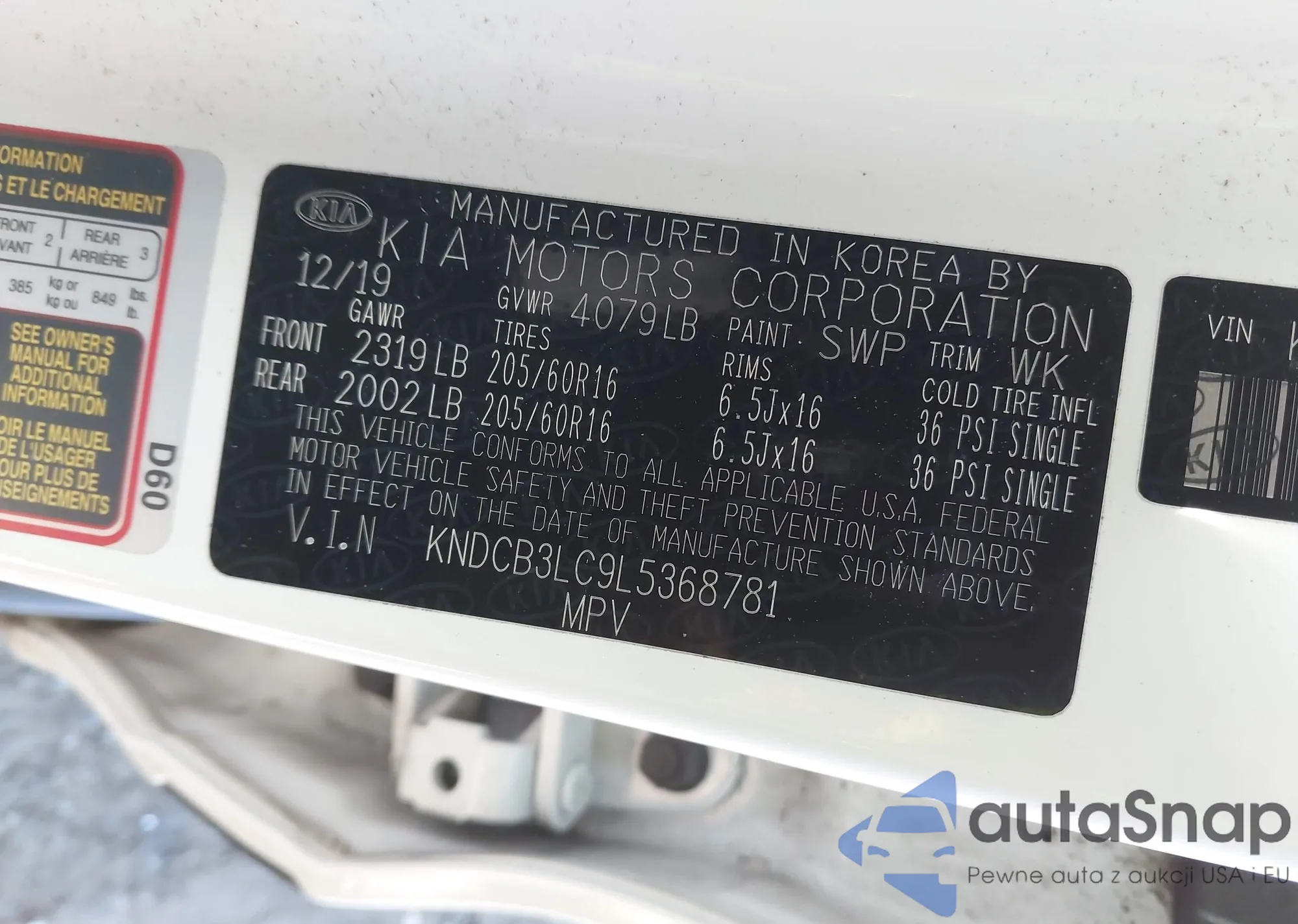 VIN: KNDCB3LC9L5368781