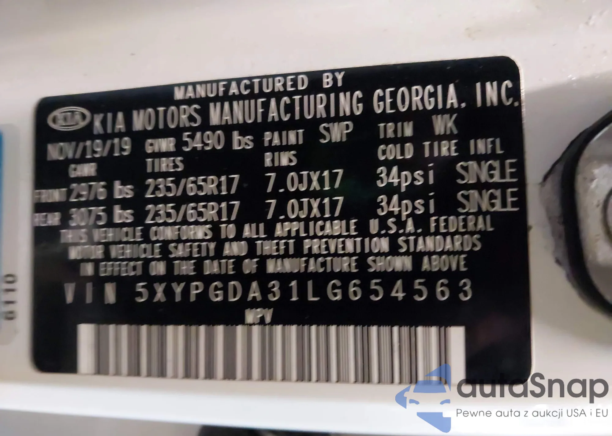 VIN: 5XYPGDA31LG654563