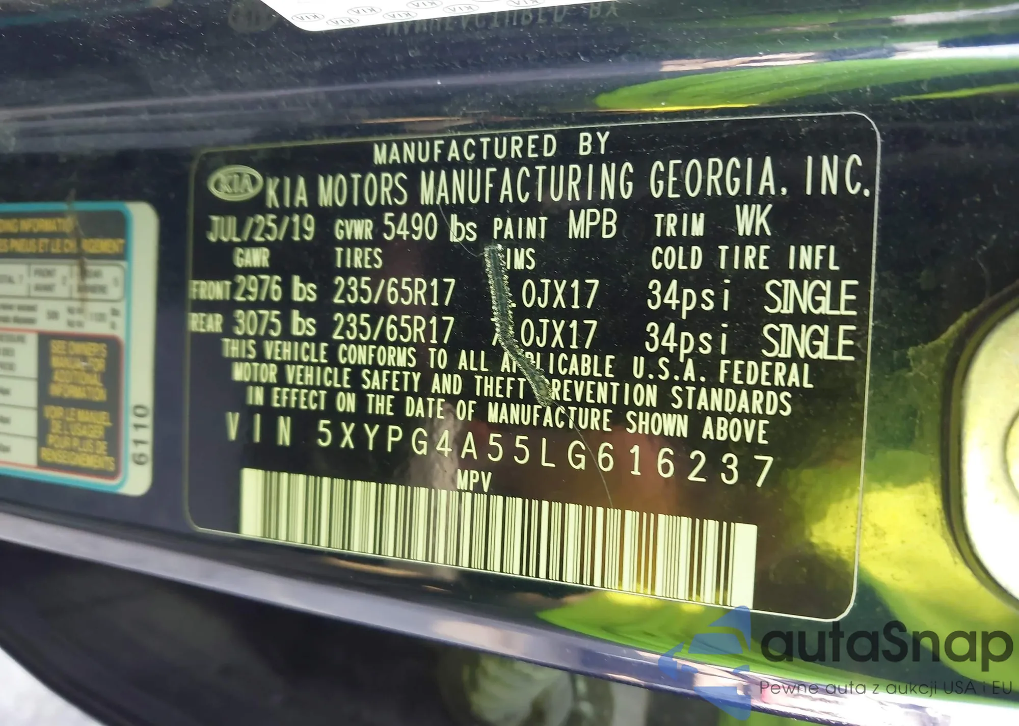 VIN: 5XYPG4A55LG616237