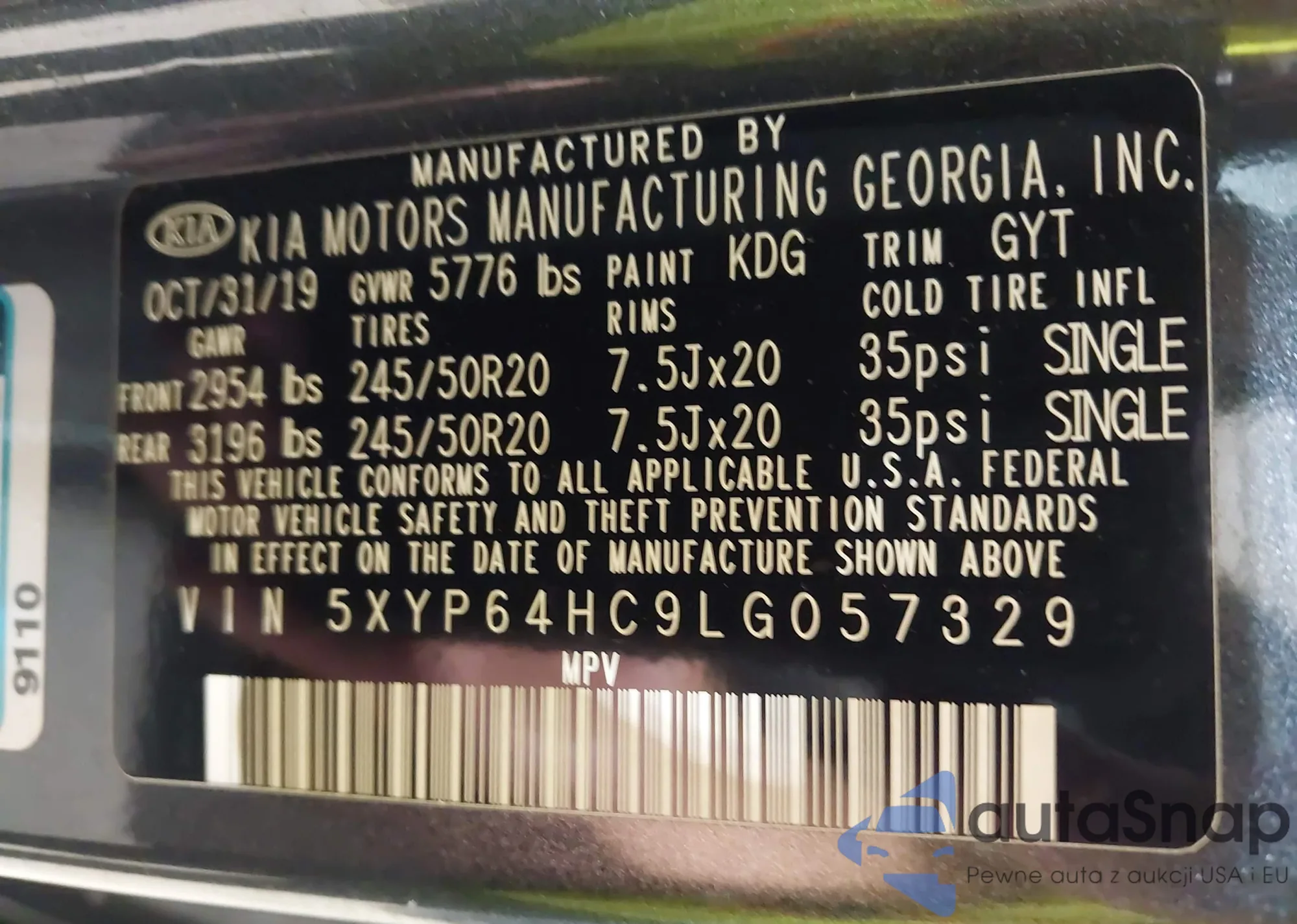 The car Kia Telluride 2020 (VIN 5XYP64HC9LG057329) has not been auctioned before. The documents are clean, and the mileage matches or is below the market average. Sold by an insurance company – we recommend purchase. Delivery to the port will take approx. 6–8 weeks.