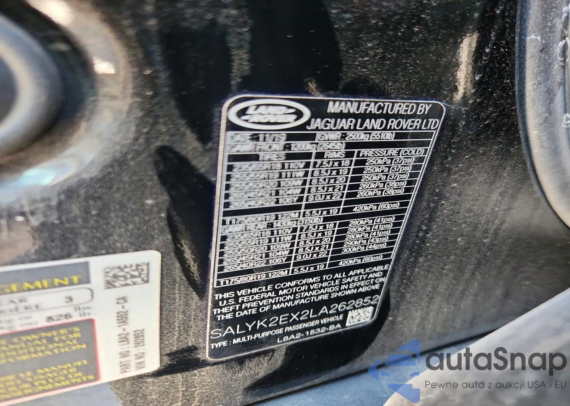 The car Land Rover Range Rover 2020 (VIN SALYK2EX2LA262852) is sold by an unverified seller. We recommend checking the Carfax report and confirming registration possibilities before purchase.