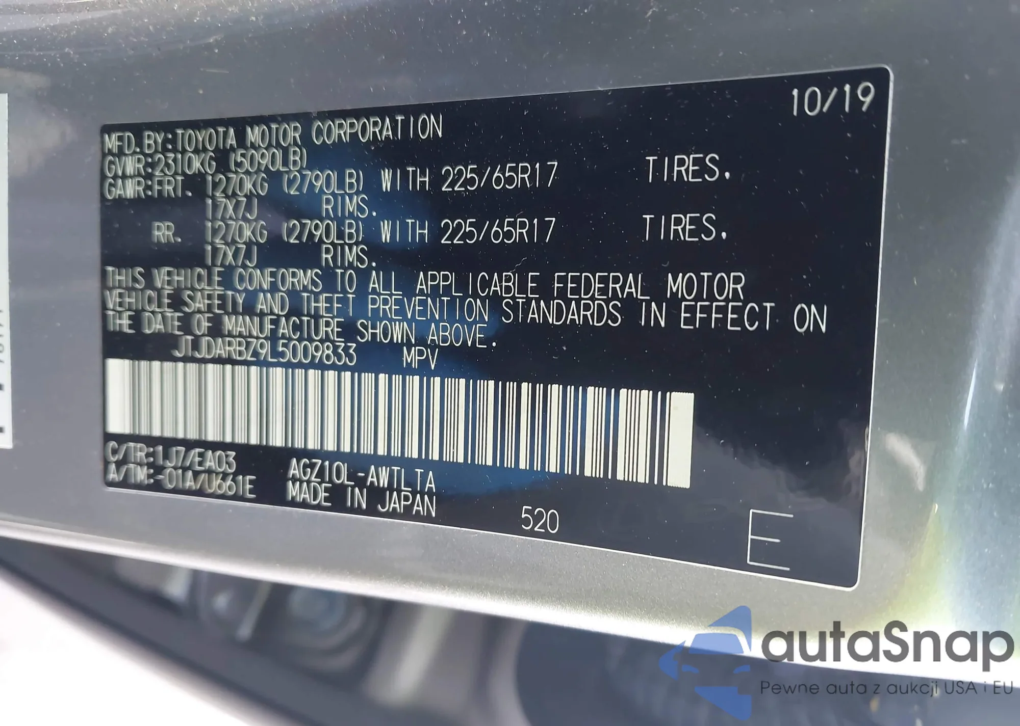 • VIN: JTJDARBZ9L5009833