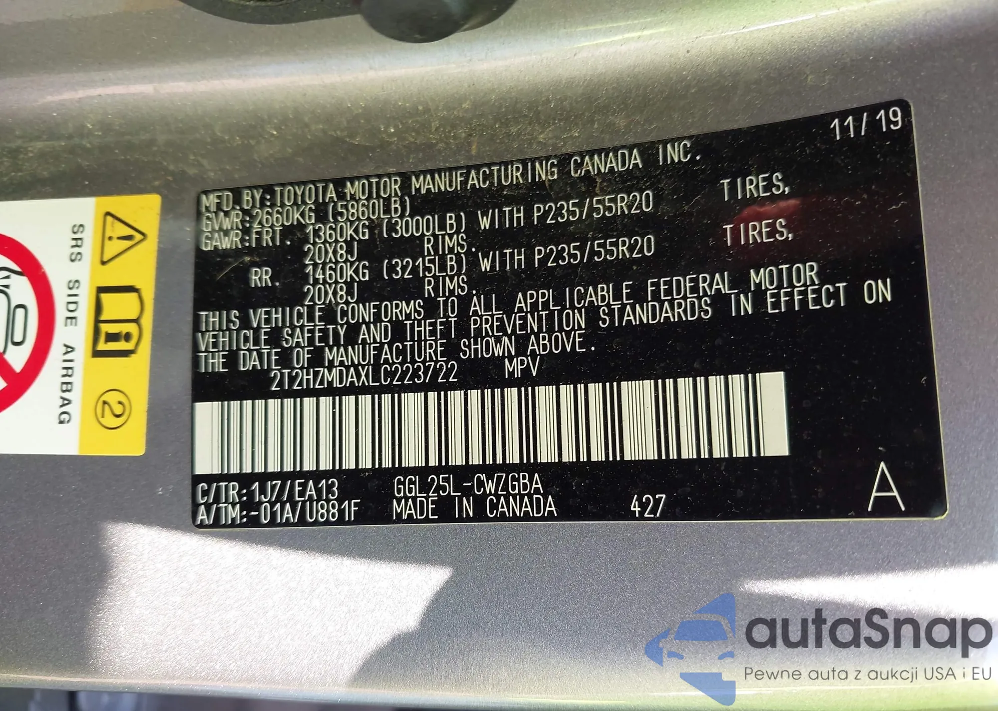 The car Lexus RX 2020 (VIN 2T2HZMDAXLC223722) has not been auctioned before. The documents are clean, and the mileage matches or is below the market average. Sold by an insurance company – we recommend purchase. Delivery to the port will take approx. 6–8 weeks.