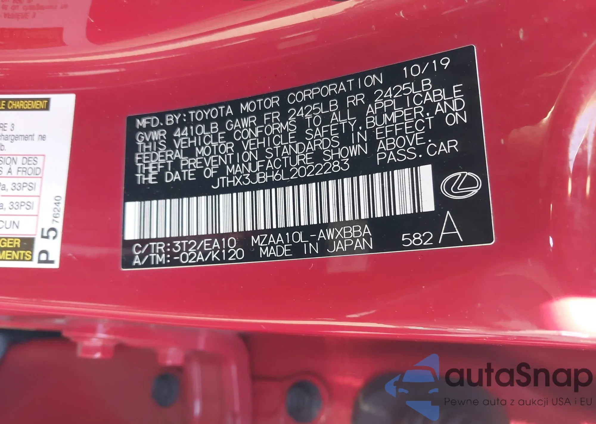 VIN: JTHX3JBH6L2022283