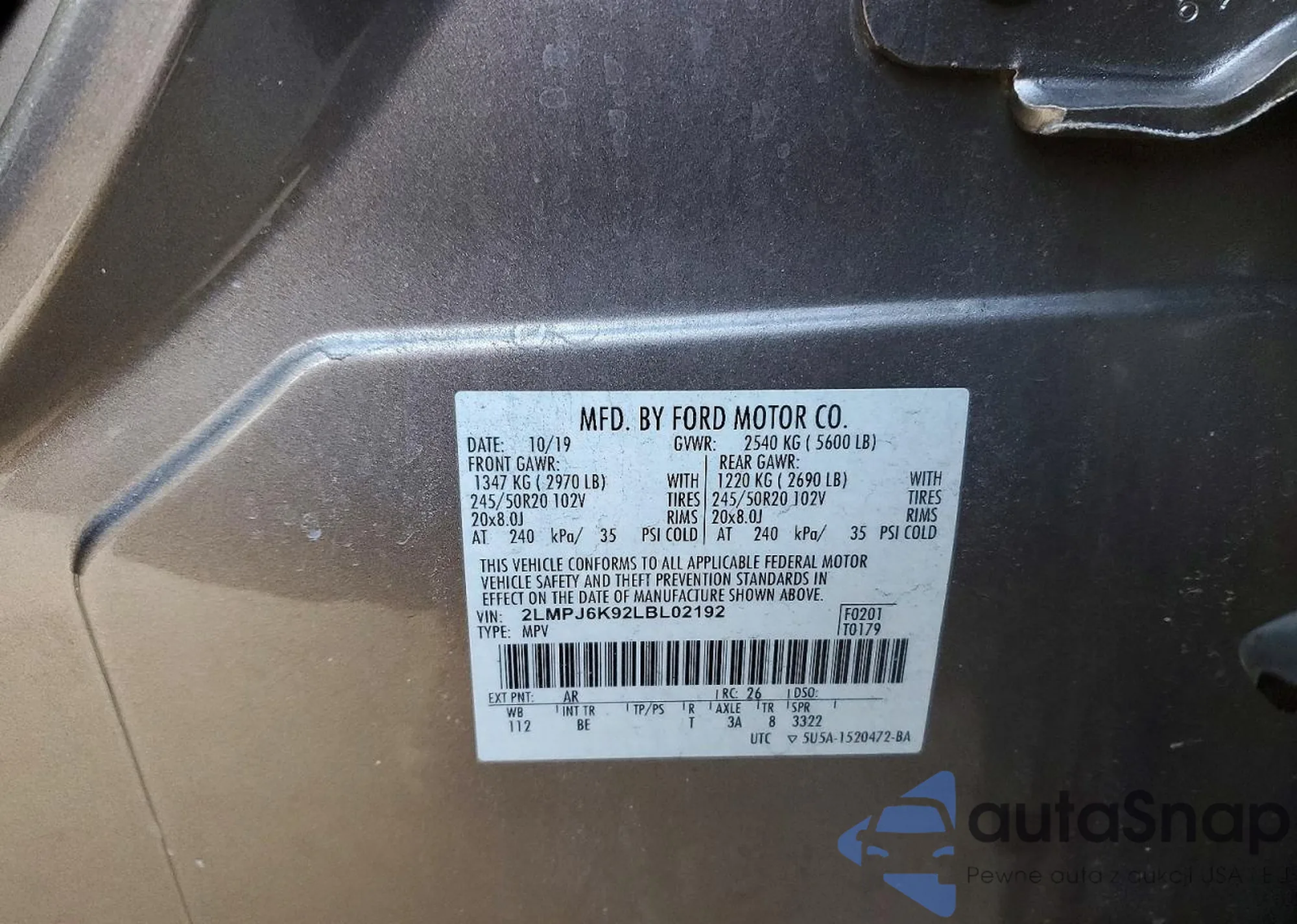 The car Lincoln Nautilus 2020 (VIN 2LMPJ6K92LBL02192) has not been auctioned before. The documents are clean, and the mileage matches or is below the market average. Sold by an insurance company – we recommend purchase. Delivery to the port will take approx. 6–8 weeks.