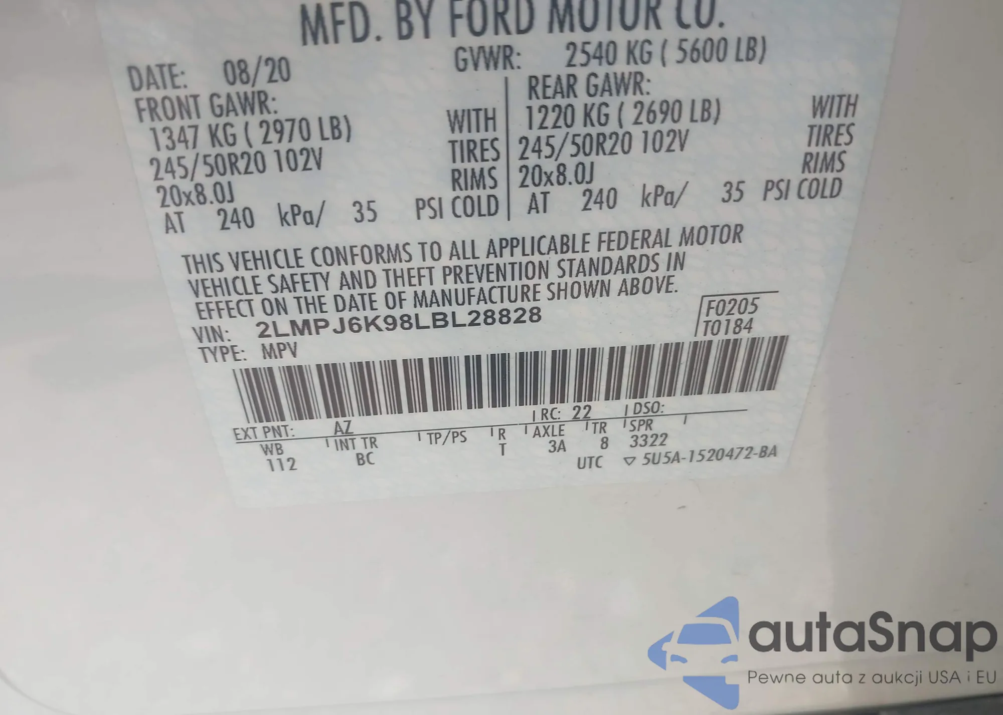 VIN: 2LMPJ6K98LBL28828