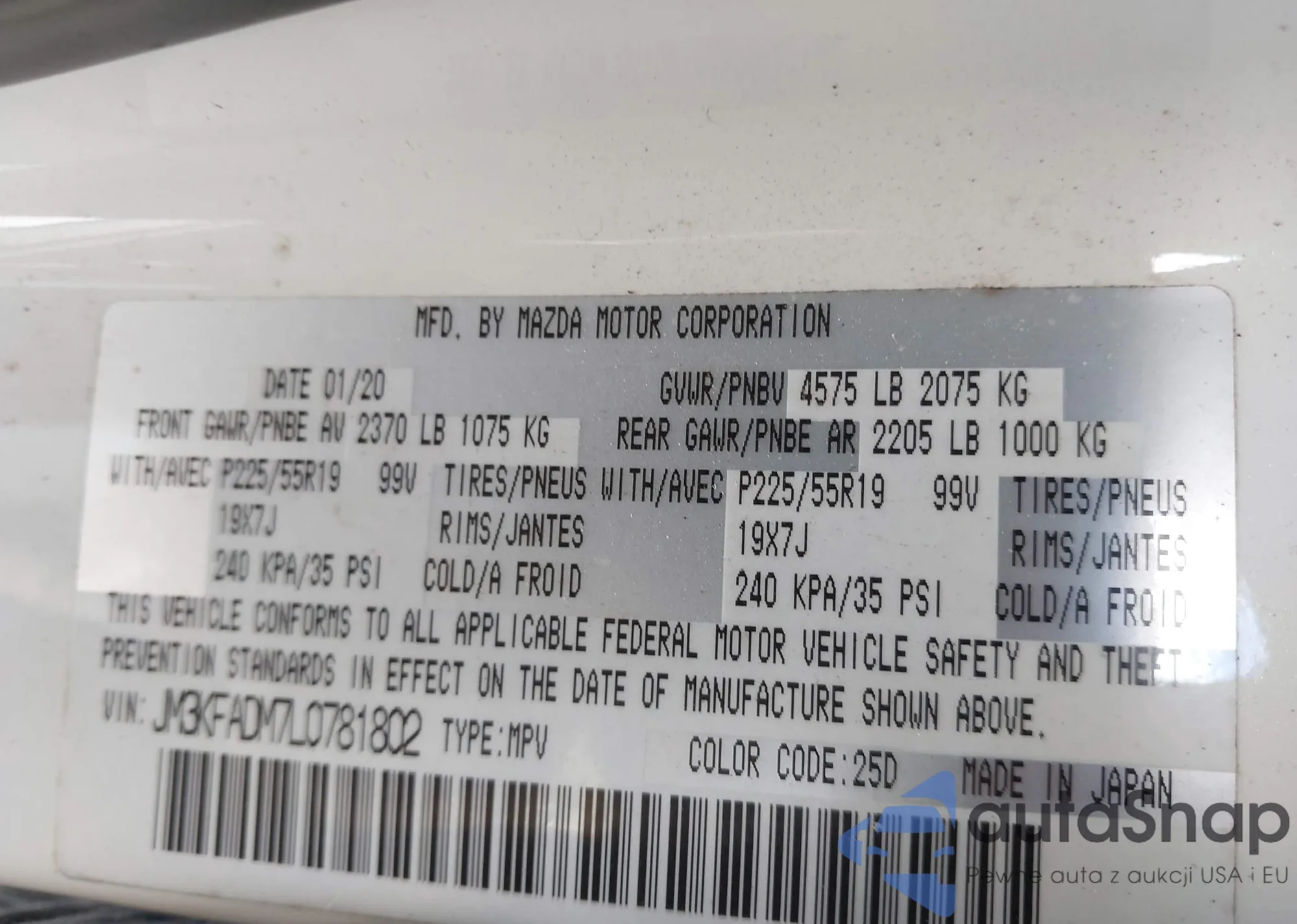 • VIN: JM3KFADM7L0781802