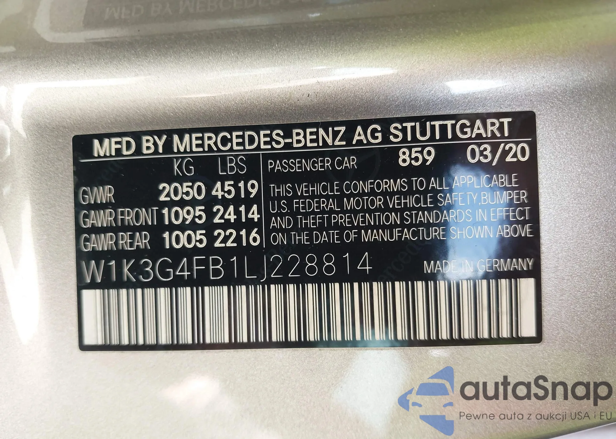 VIN: W1K3G4FB1LJ228814