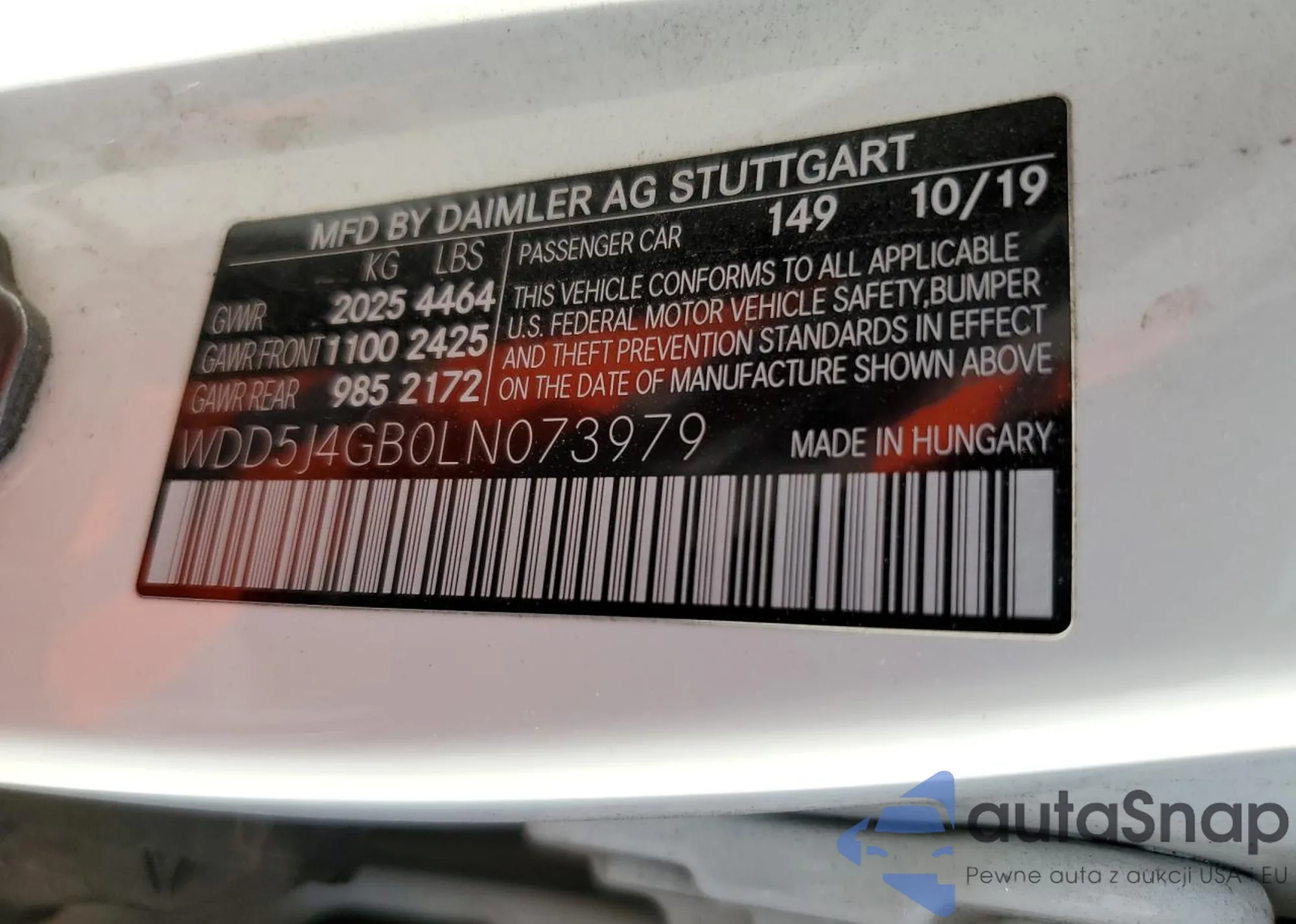 The car Mercedes-Benz CLA-klasse 2020 (VIN WDD5J4GB0LN073979) has not been auctioned before. The documents are clean, and the mileage matches or is below the market average. Sold by an insurance company – we recommend purchase. Delivery to the port will take approx. 6–8 weeks.