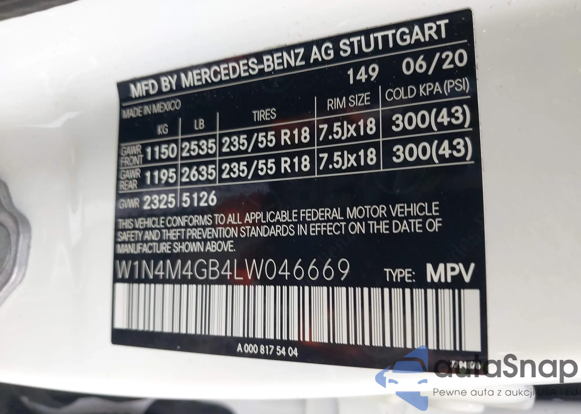 VIN: W1N4M4GB4LW046669
