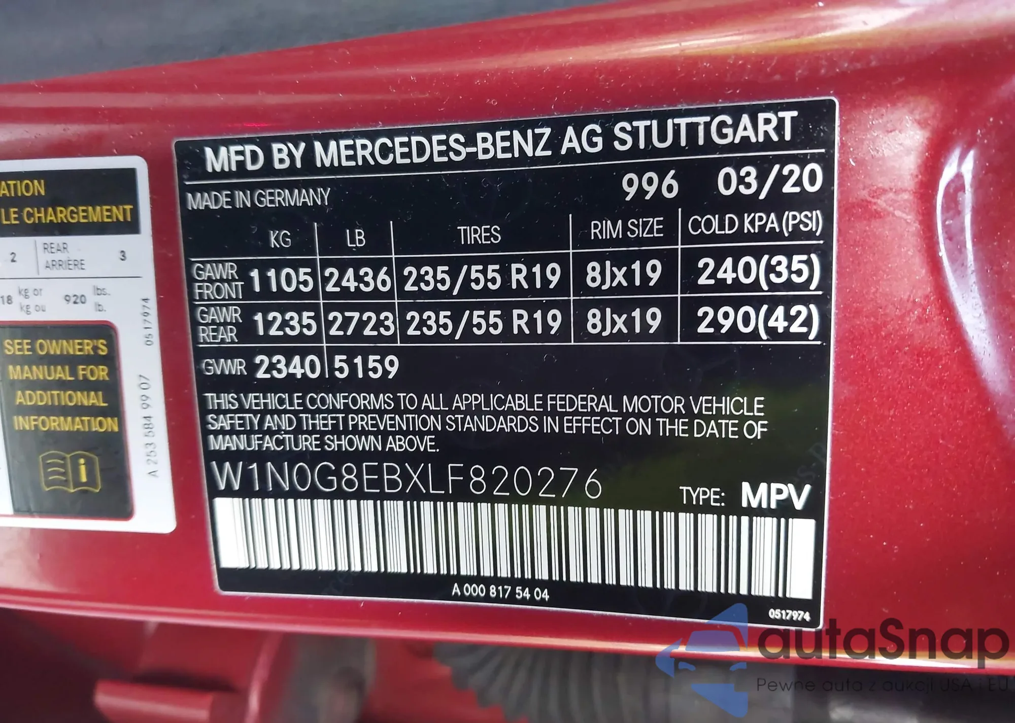 • VIN: W1N0G8EBXLF820276