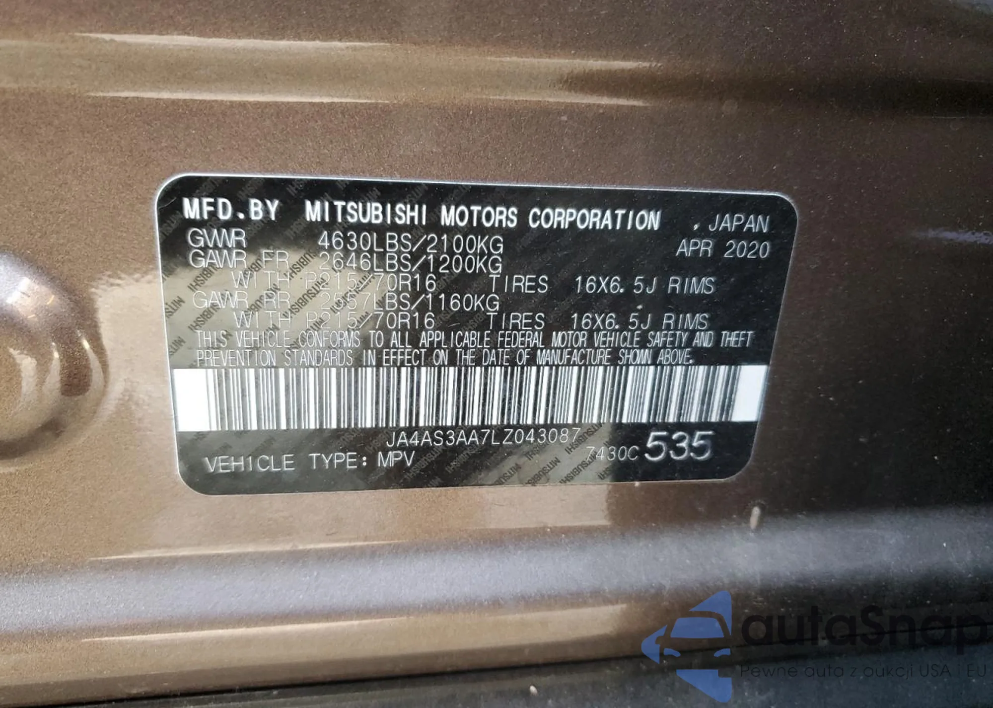 VIN: JA4AS3AA7LZ043087