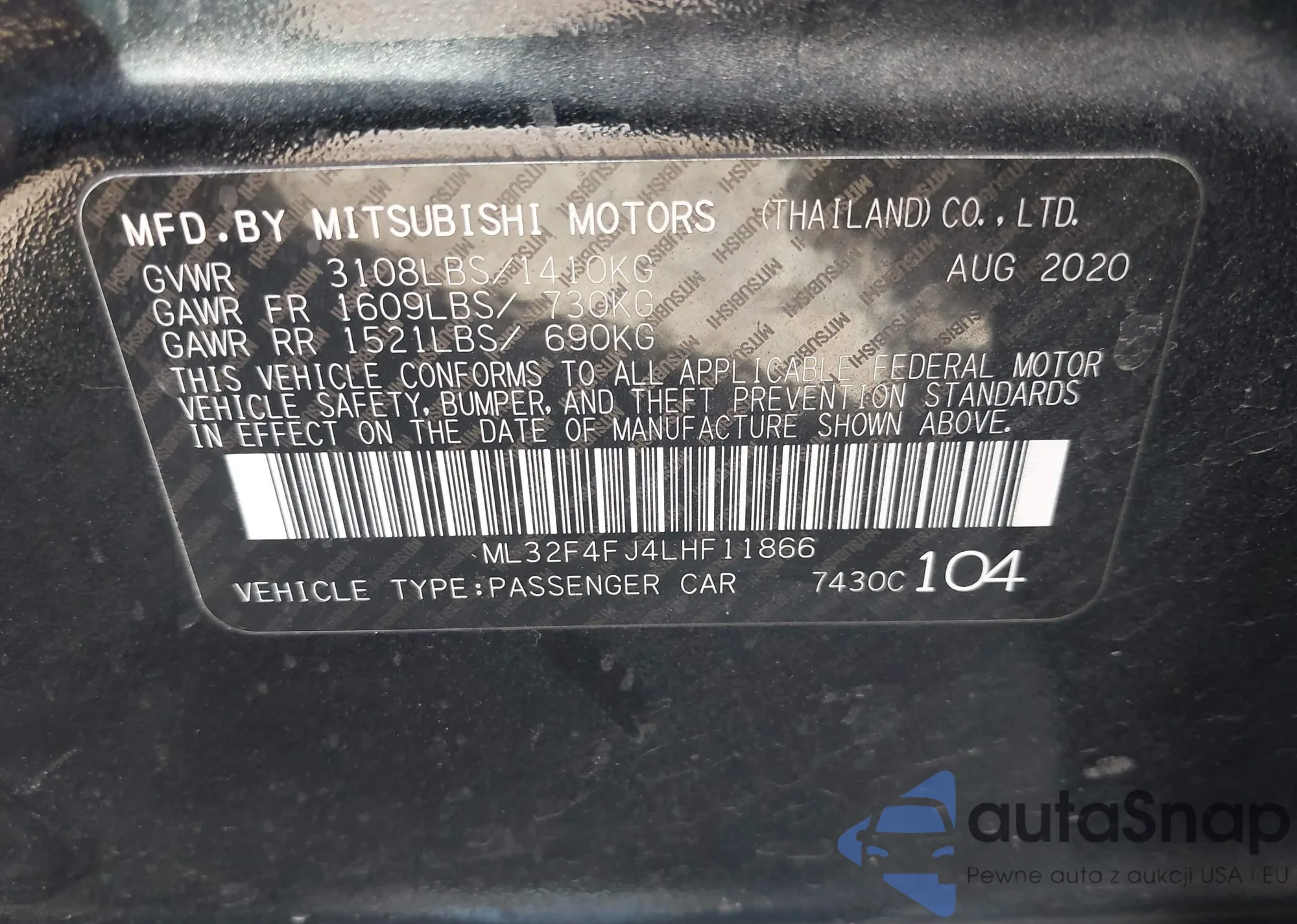 The car Mitsubishi Mirage 2020 (VIN ML32F4FJ4LHF11866) is sold by an unverified seller. We recommend checking the Carfax report and confirming registration possibilities before purchase.