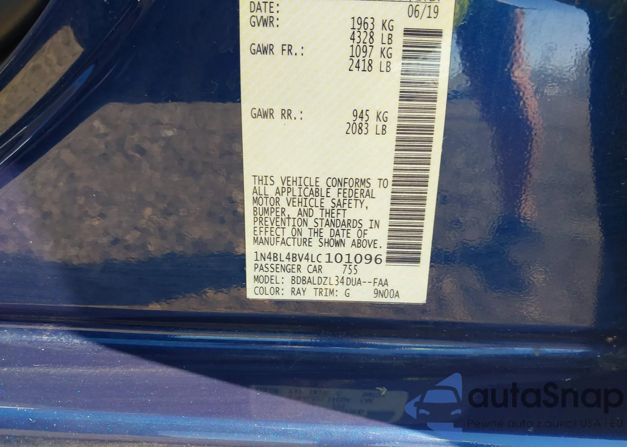 VIN: 1N4BL4BV4LC101096