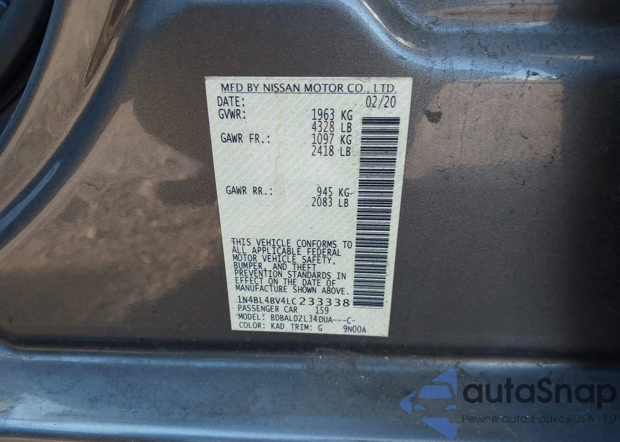 VIN: 1N4BL4BV4LC233338