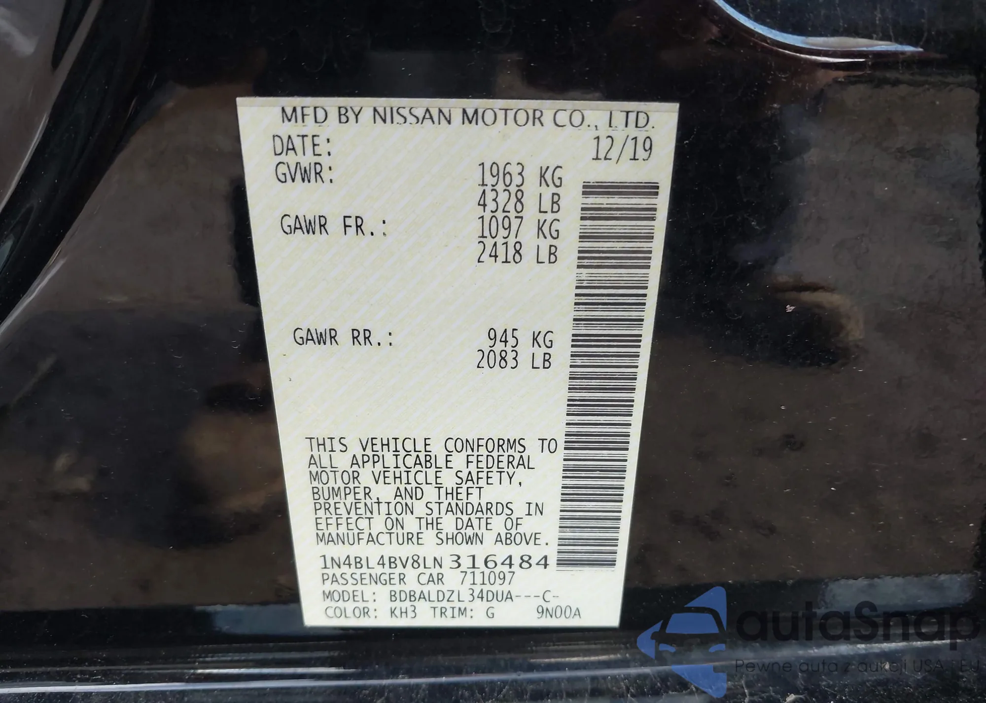 VIN: 1N4BL4BV8LN316484