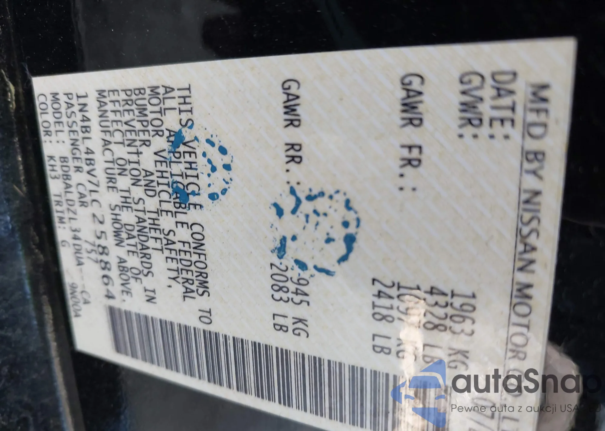 VIN: 1N4BL4BV7LC258864