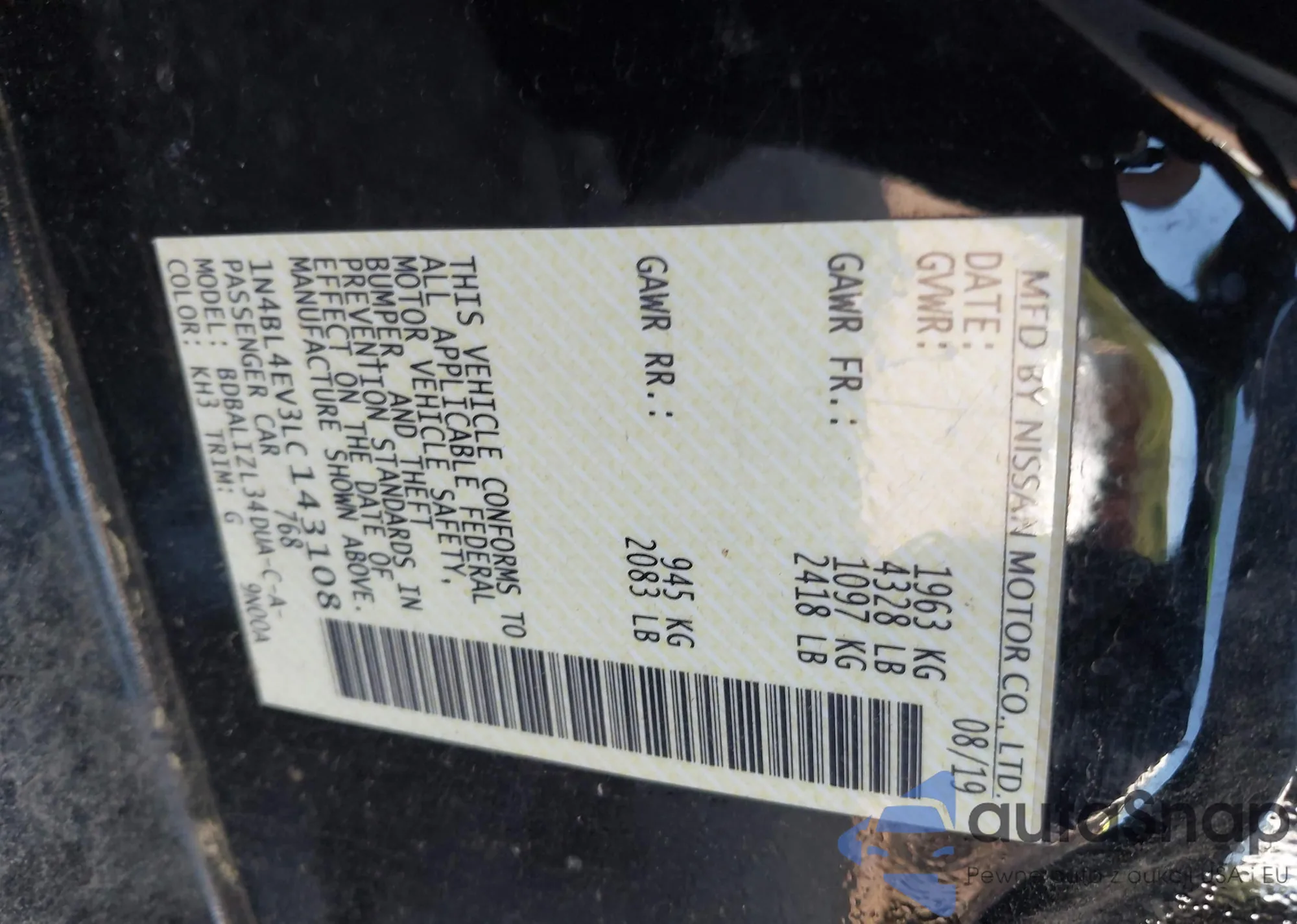 VIN: 1N4BL4EV3LC143108