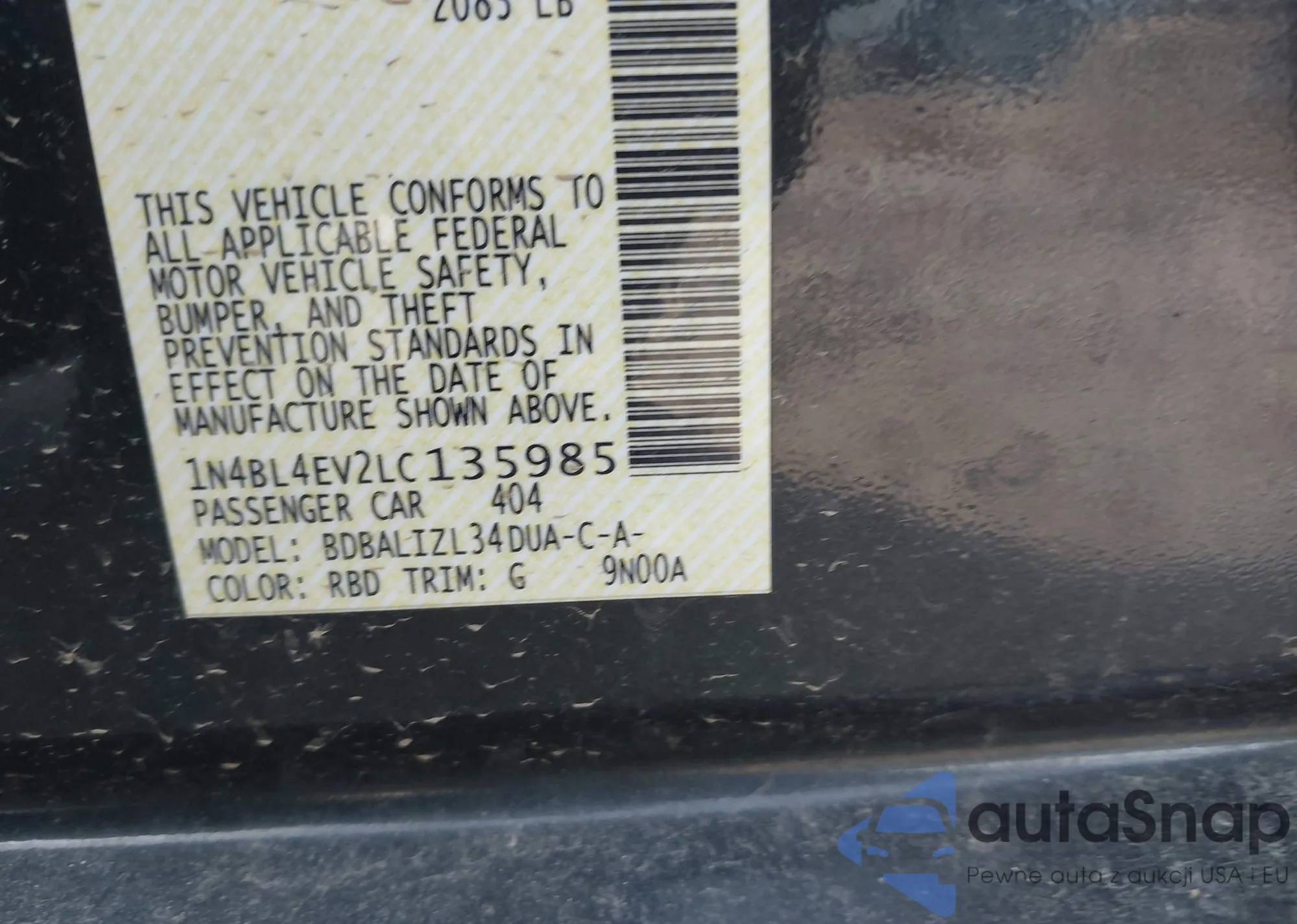 The car Nissan Altima 2020 (VIN 1N4BL4EV2LC135985) has not been auctioned before. The documents are clean, and the mileage matches or is below the market average. Sold by an insurance company – we recommend purchase. Delivery to the port will take approx. 6–8 weeks.