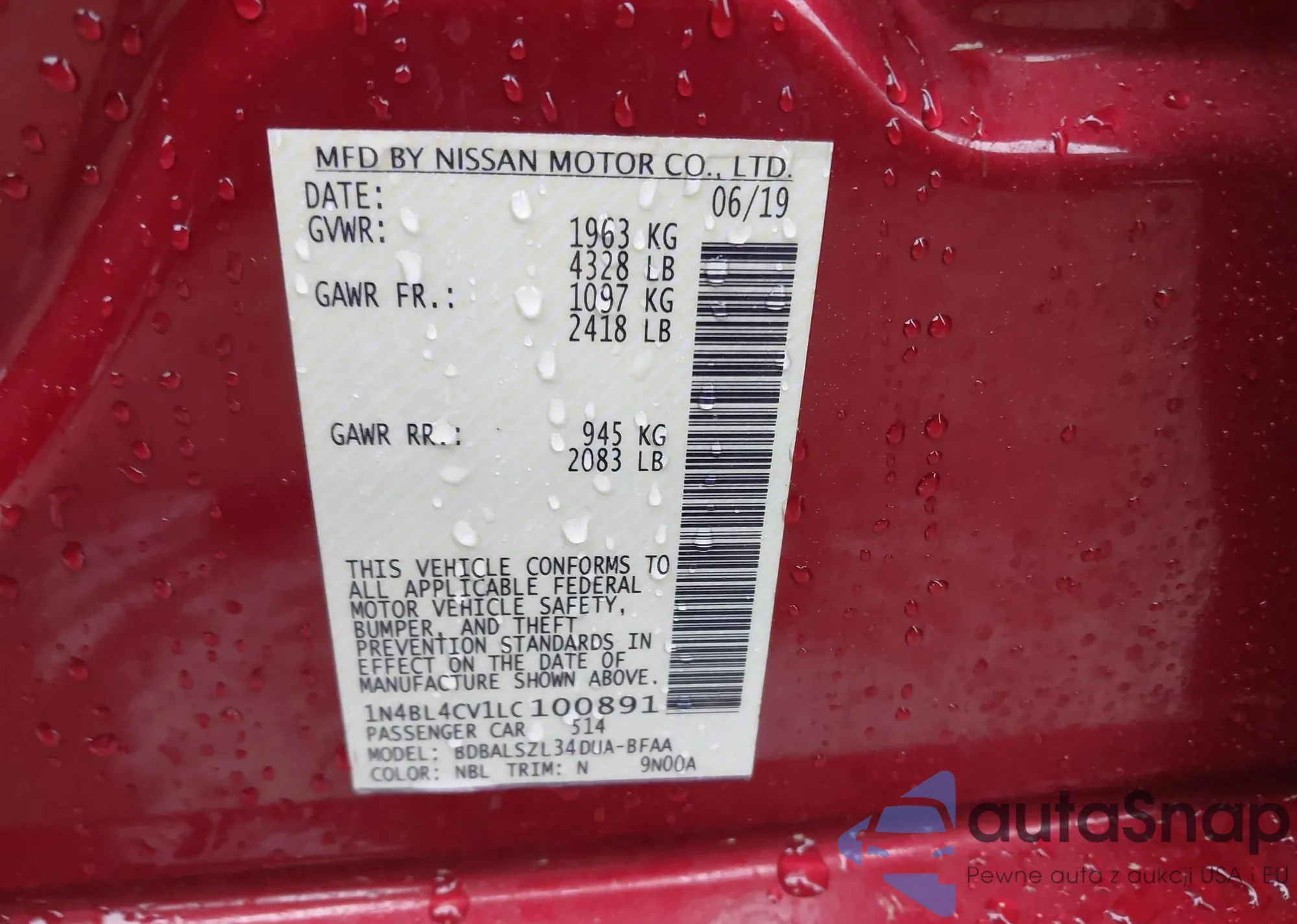 VIN: 1N4BL4CV1LC100891