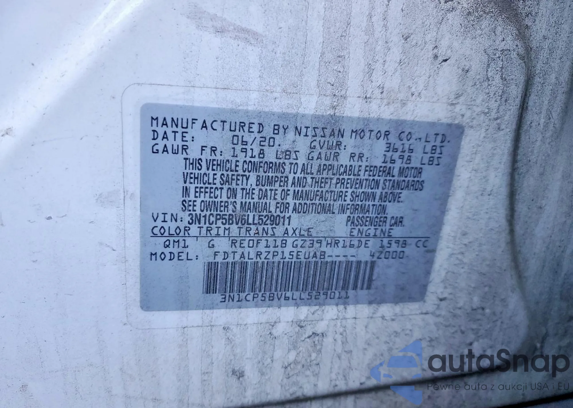 The car Nissan Kicks 2020 (VIN 3N1CP5BV6LL529011) is sold by an unverified seller. We recommend checking the Carfax report and confirming registration possibilities before purchase.