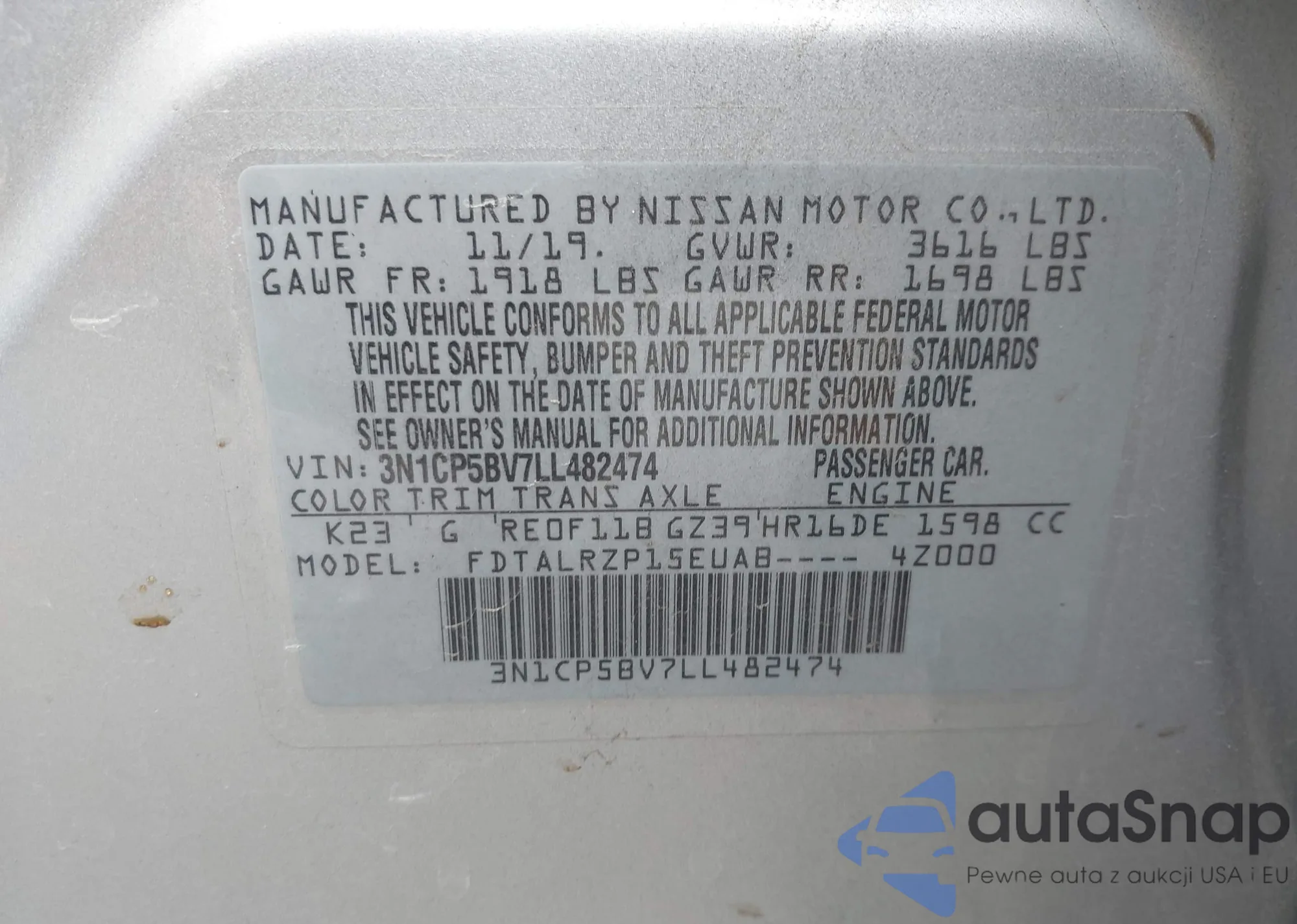 VIN: 3N1CP5BV7LL482474