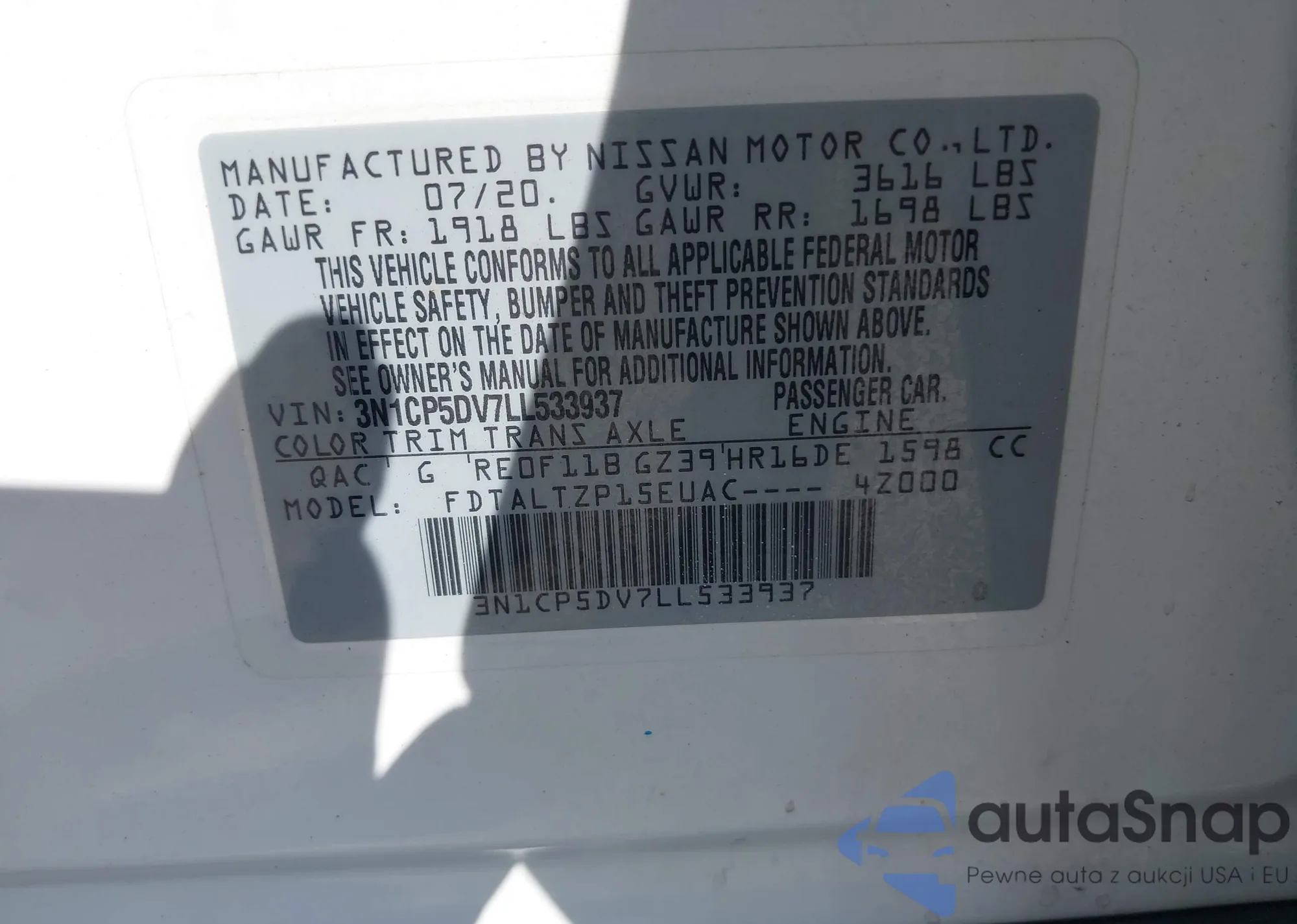 VIN: 3N1CP5DV7LL533937
