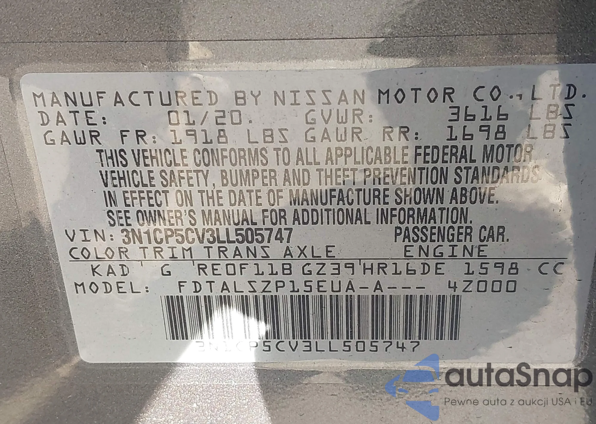 VIN: 3N1CP5CV3LL505747