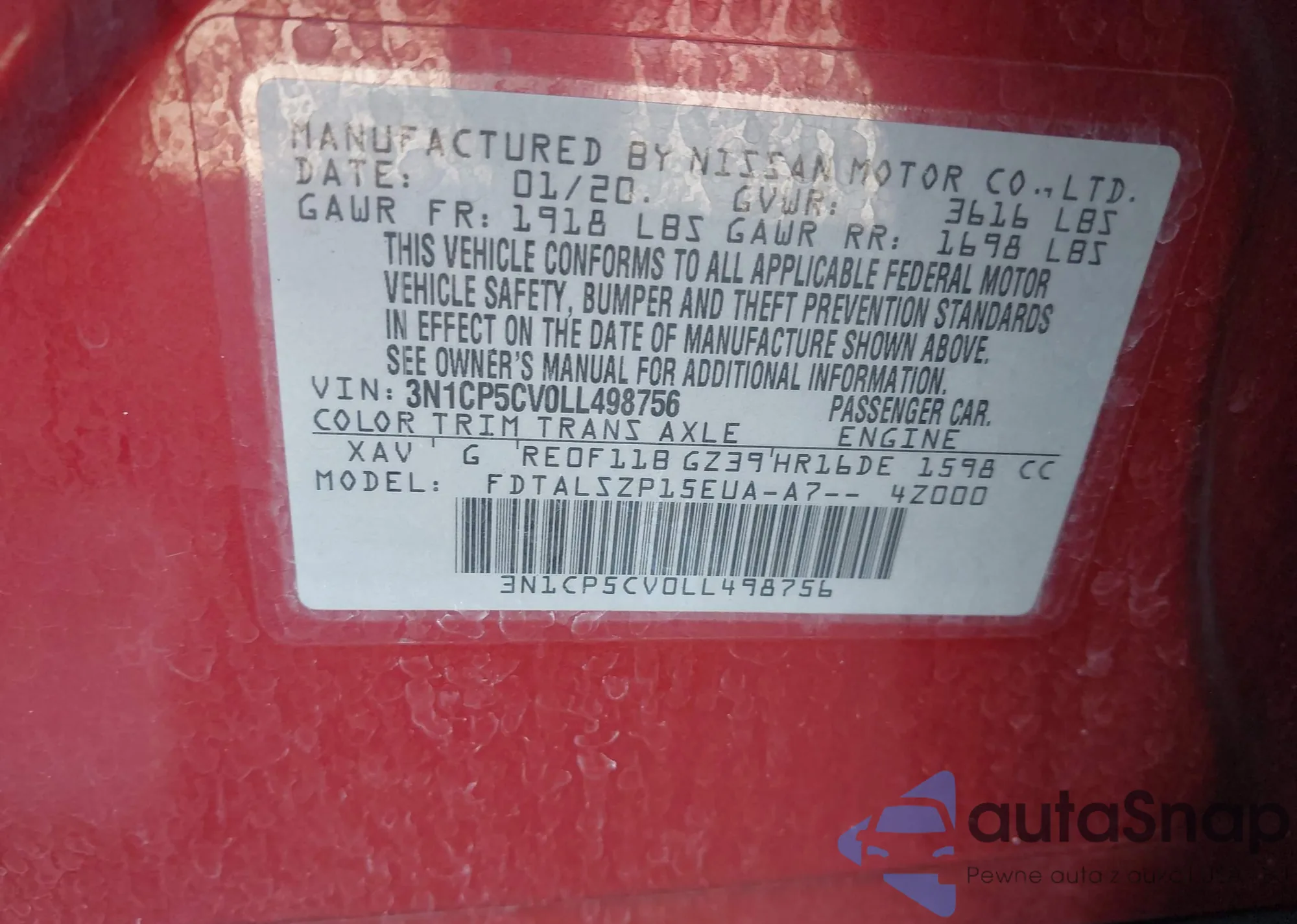 VIN: 3N1CP5CV0LL498756