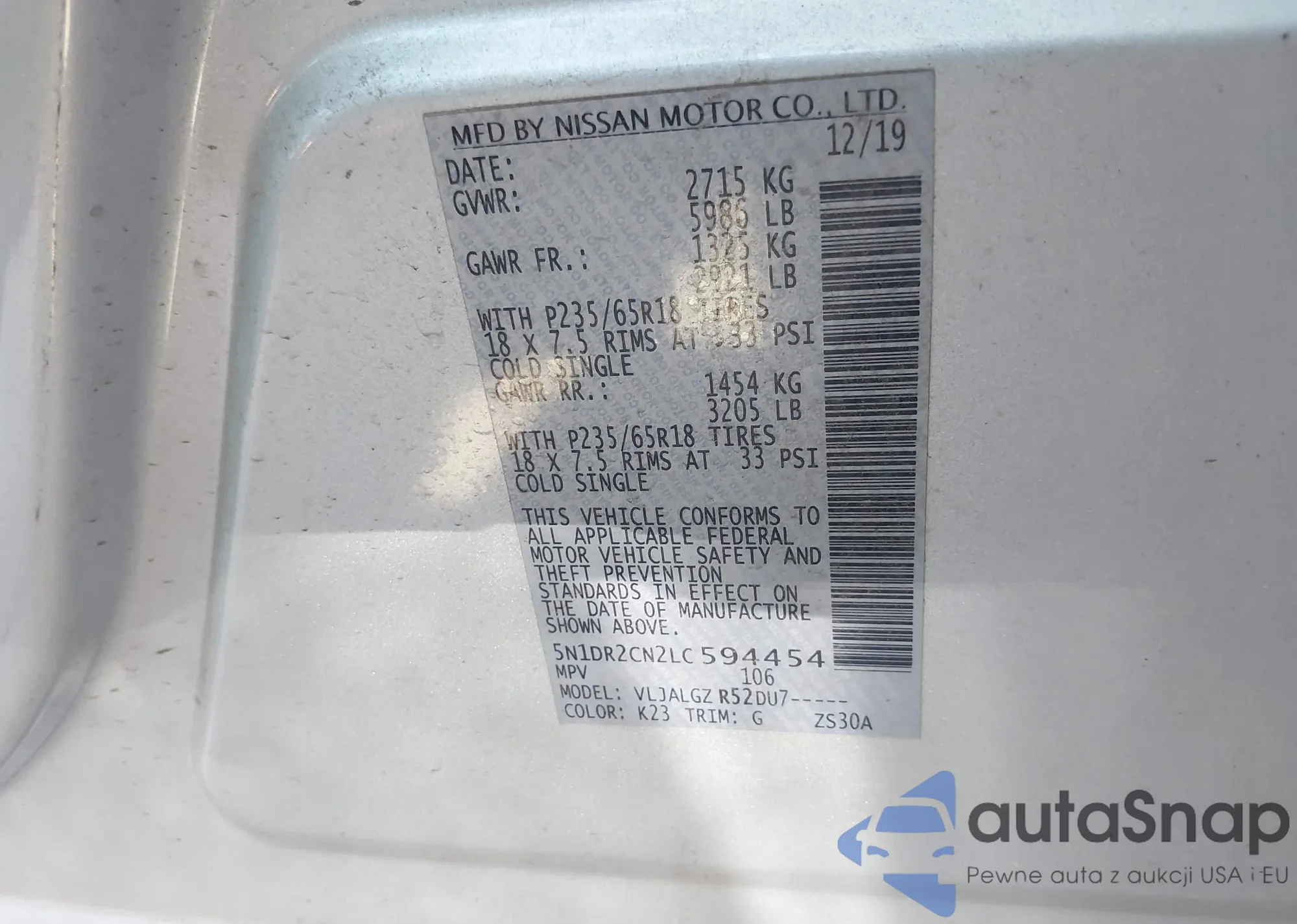 VIN: 5N1DR2CN2LC594454