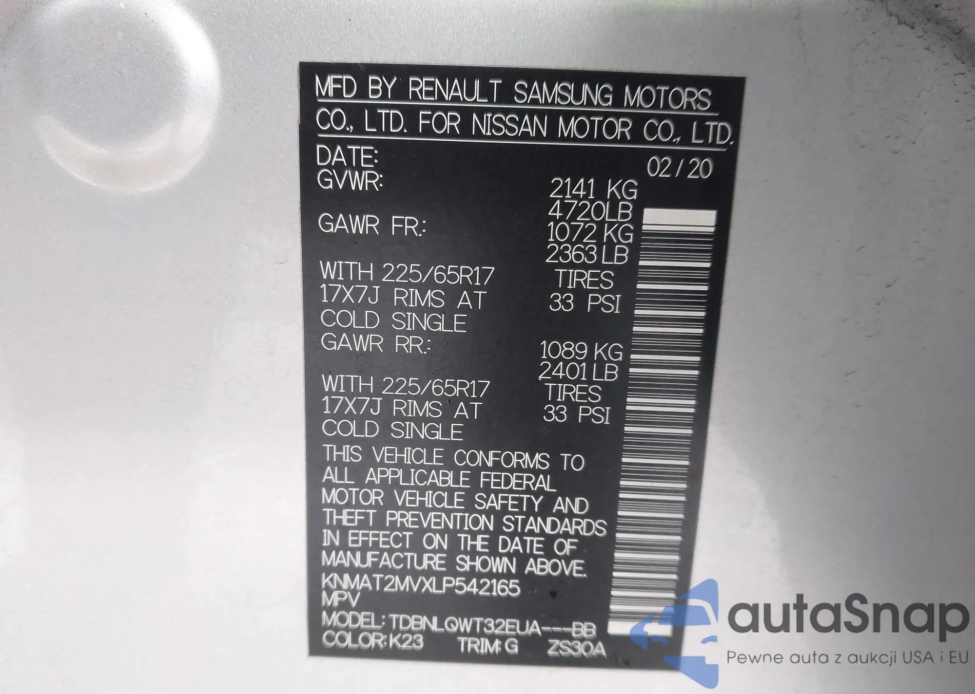 VIN: KNMAT2MVXLP542165