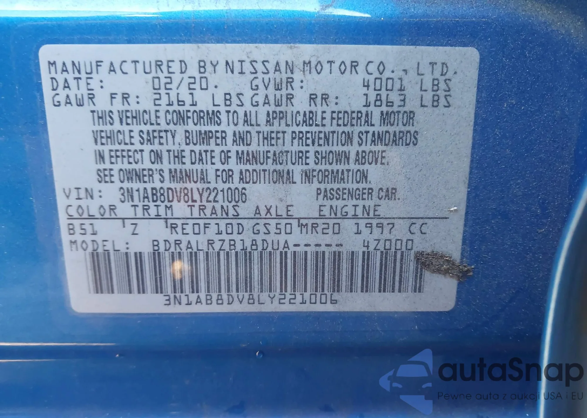 • VIN: 3N1AB8DV8LY221006