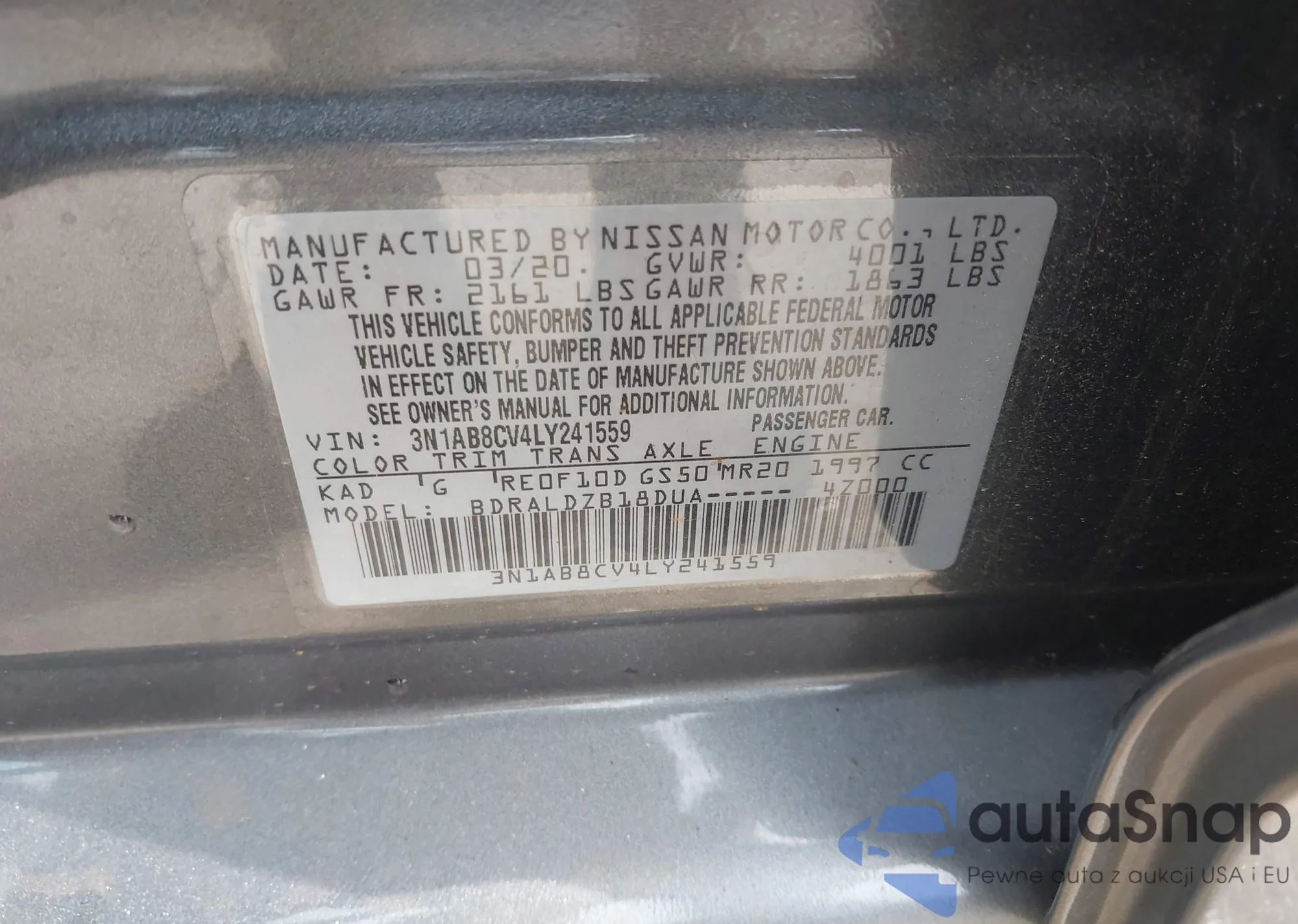 • VIN: 3N1AB8CV4LY241559