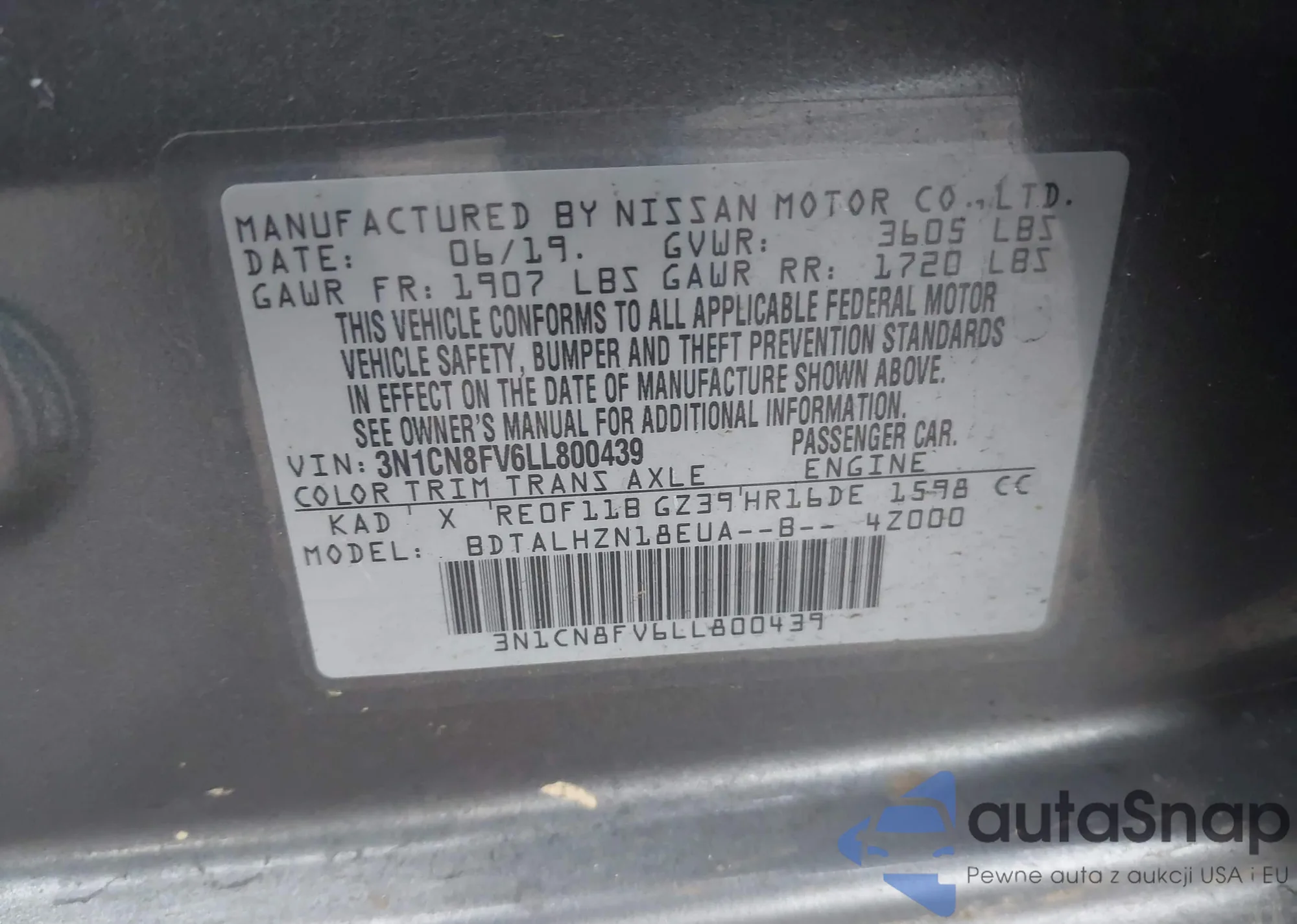 VIN: 3N1CN8FV6LL800439