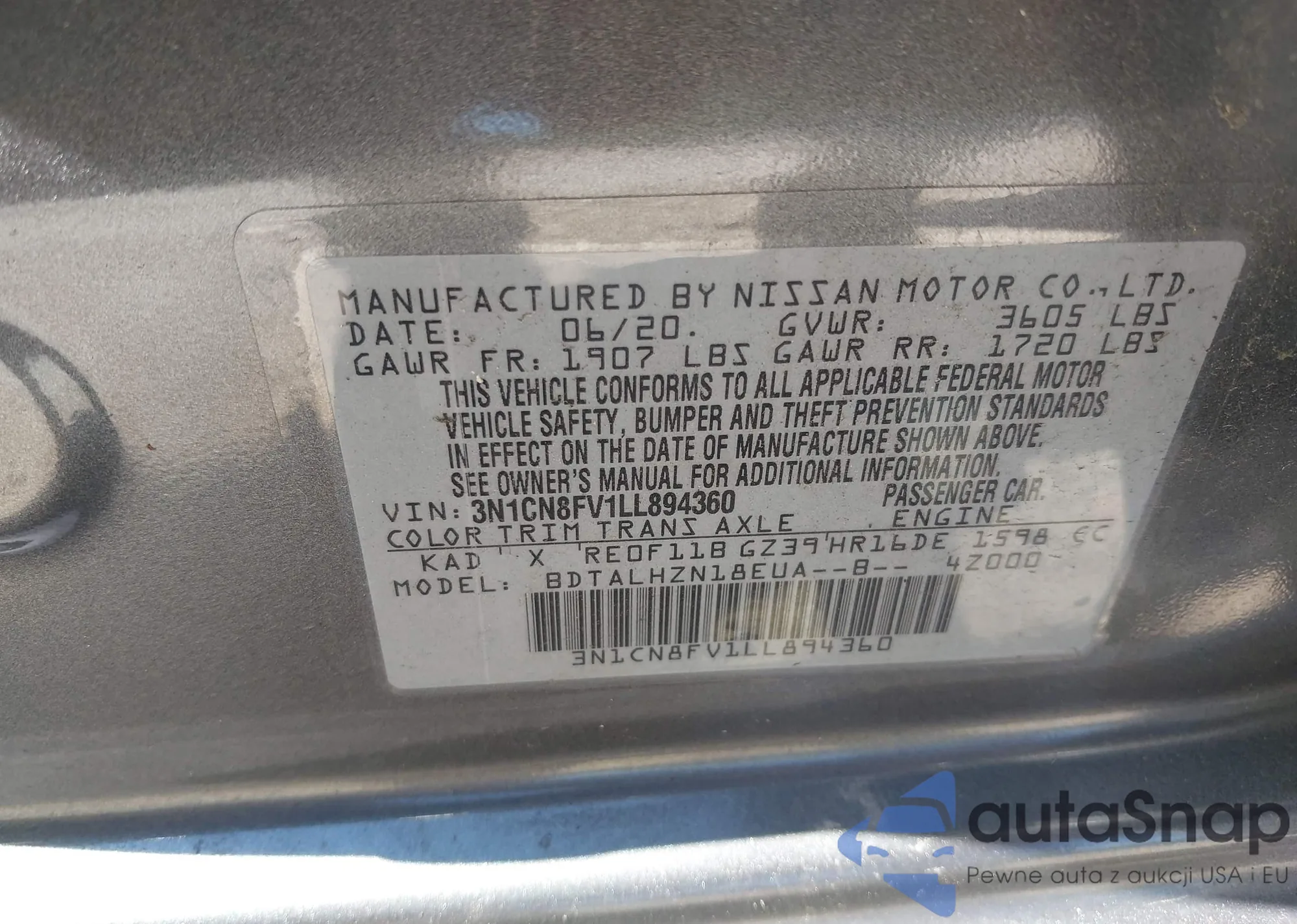 VIN: 3N1CN8FV1LL894360