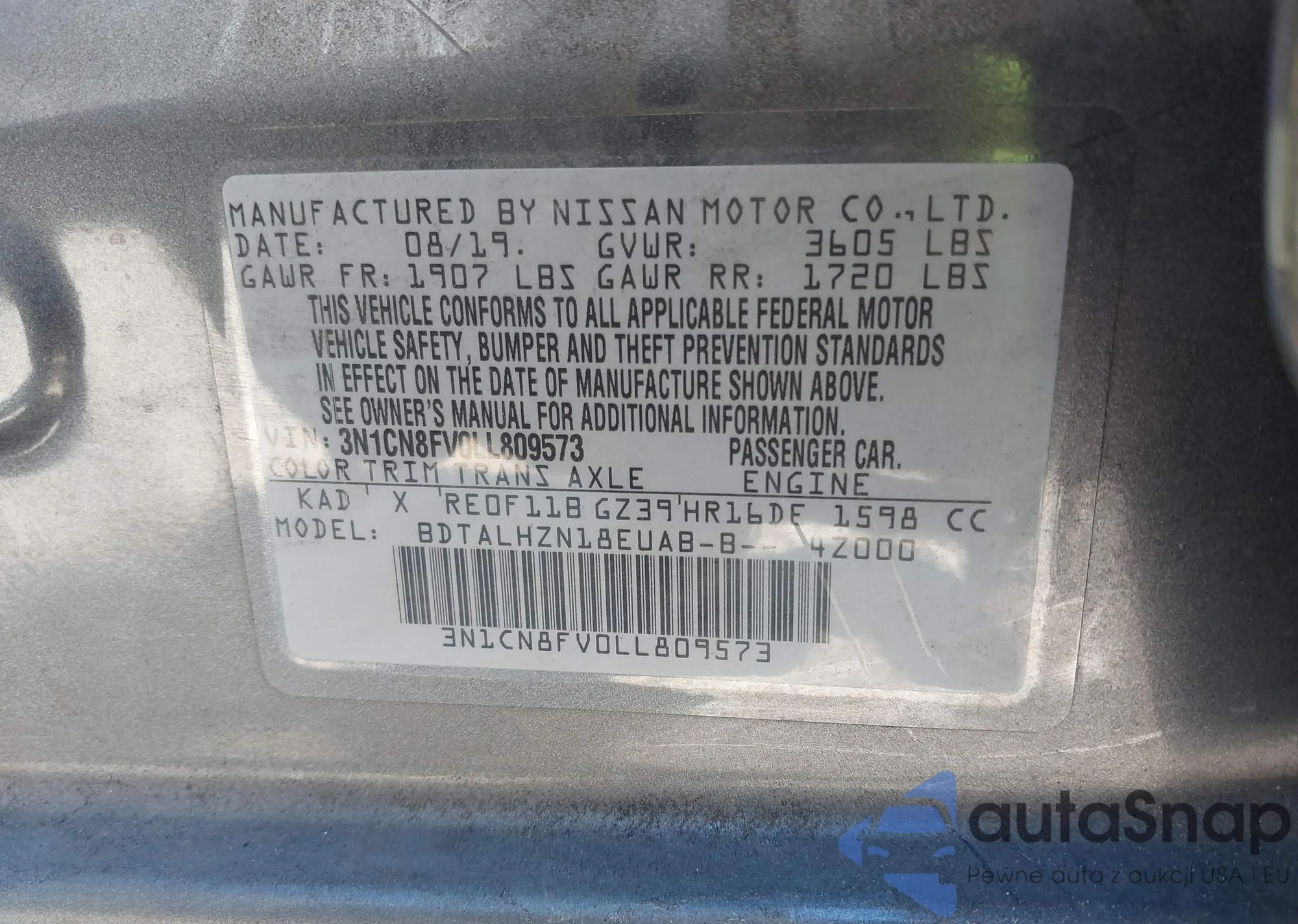 VIN: 3N1CN8FV0LL809573